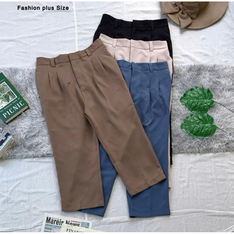 (มีไซส์ 32-50) กางเกงทำงานคนอวบ 7 ส่วนตะขอหน้า กางเกงตะขอคนอวบเอวสูง สไตล์เบสิก ไม่ยาวมาก ผ้าทิ้งตัว ทรงสวย