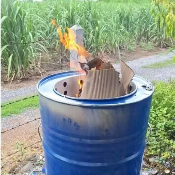 ถังเผาขยะ2ชั้น เตาเผาขยะไร้ควันมีฝาปิด ขนาด 200ลิตร