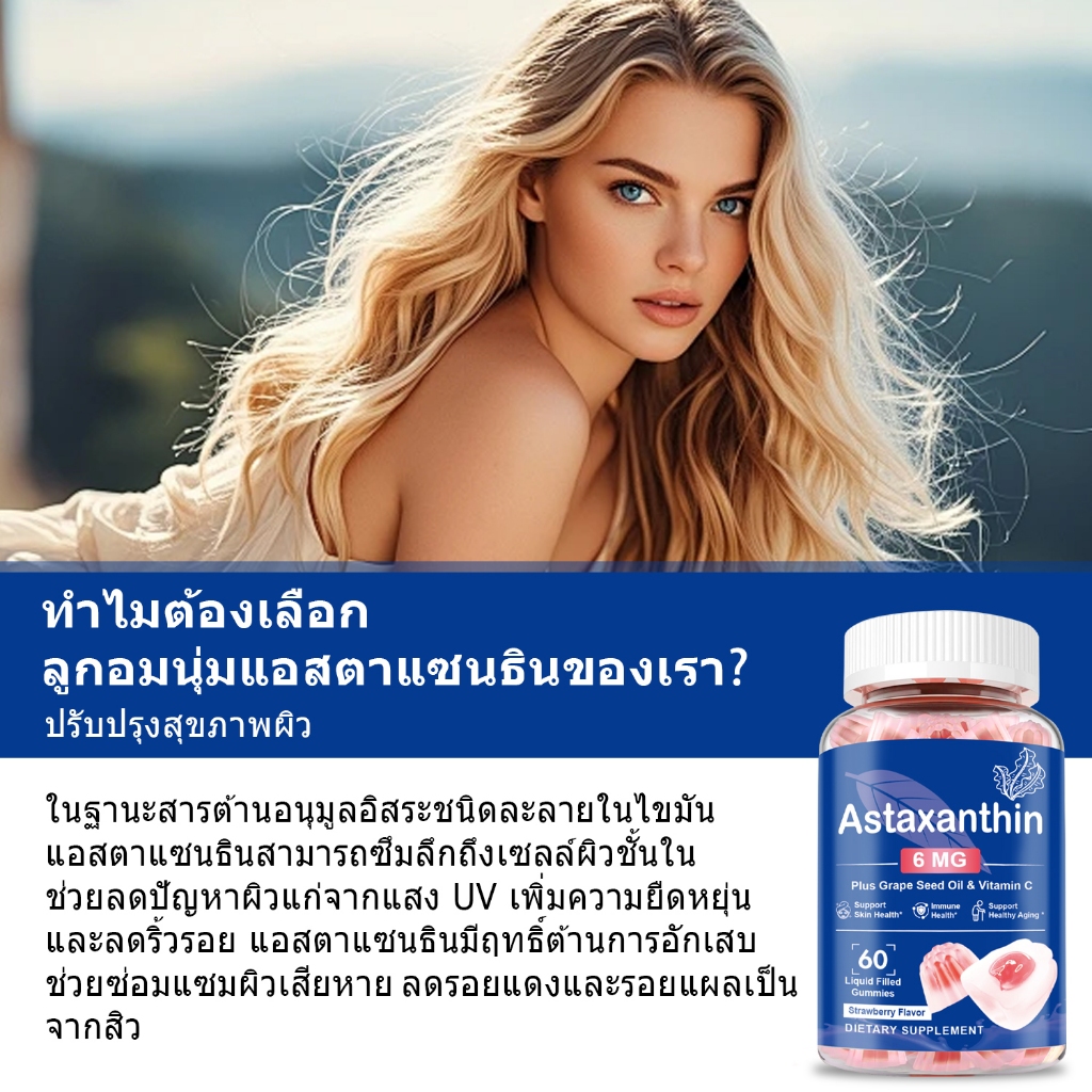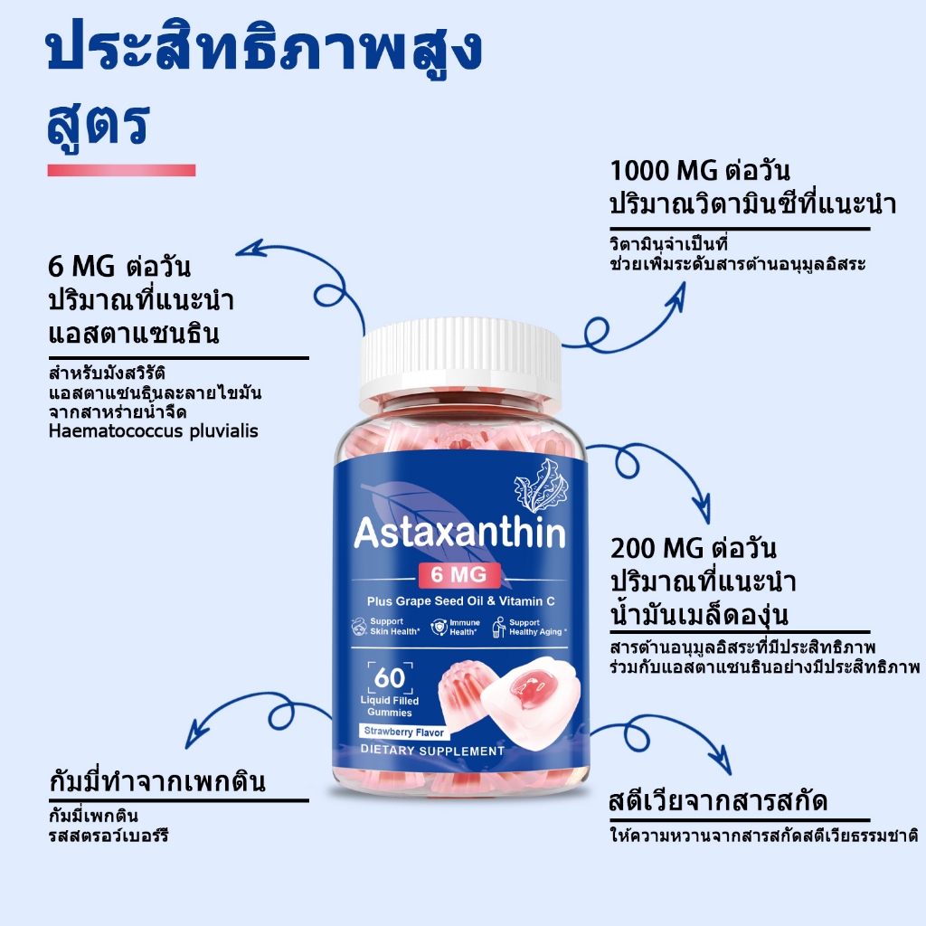 Ozmolts Astaxanthin Gummy อาหารเสริม For ผิวมัน Support ผิว and ระบบประสาท สุขภาพ ยูนิฟอร์ม