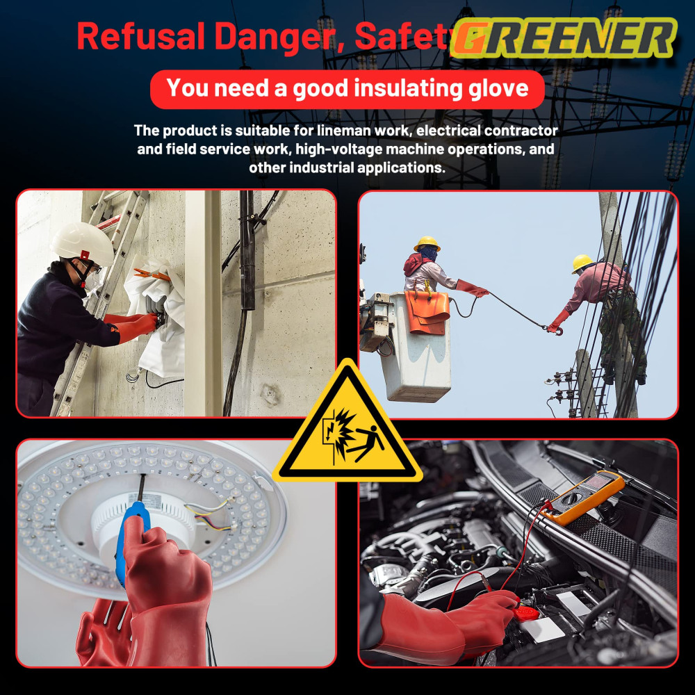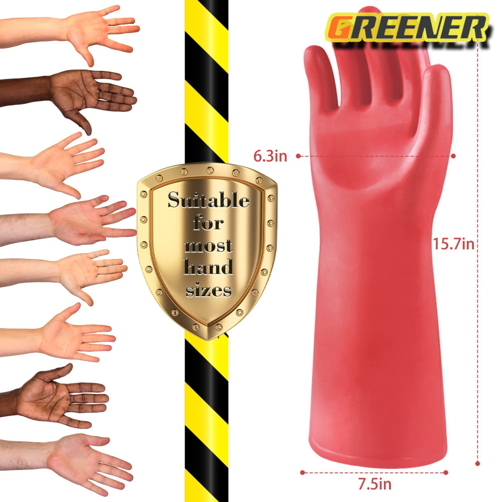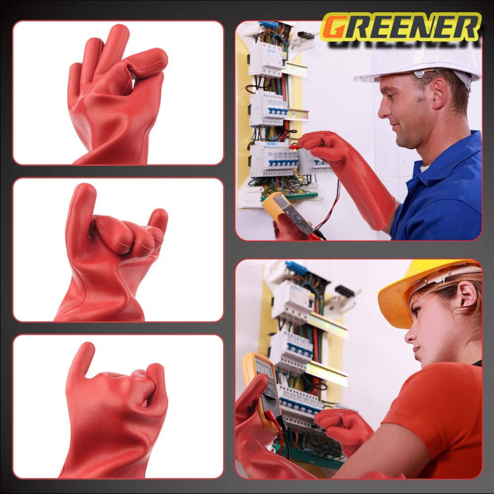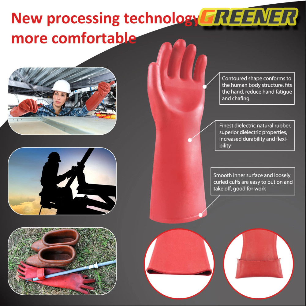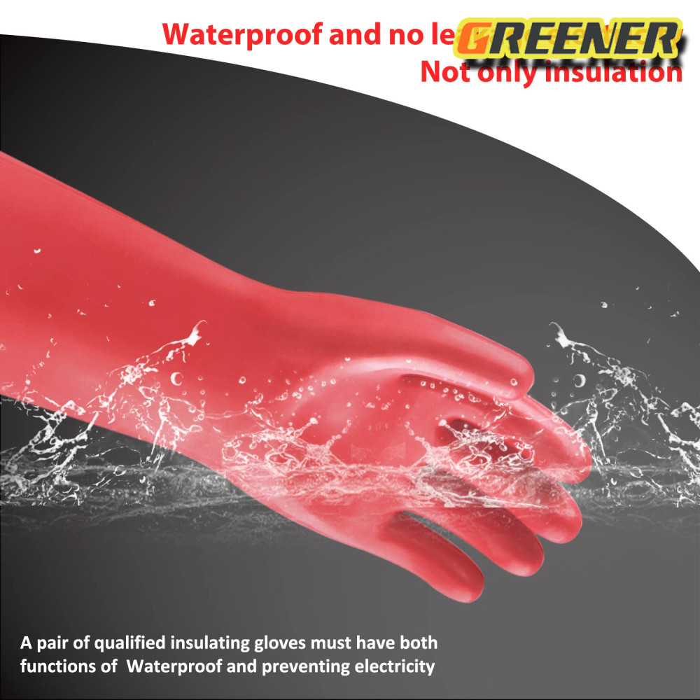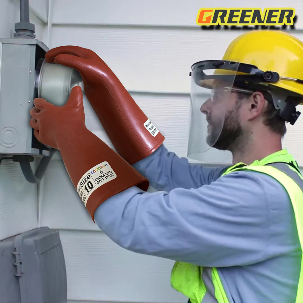 Greener ถุงมือฉนวนไฟฟ้าแรงสูง 12kv การป้องกันการรั่วไหลของความปลอดภัย ถุงมือยางป้องกันไฟฟ้าOT28 ถุงมือกันไฟดูด กันน้ำ
