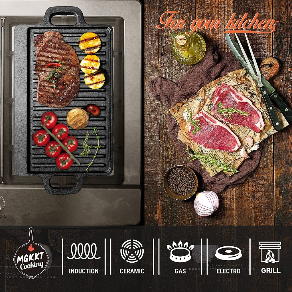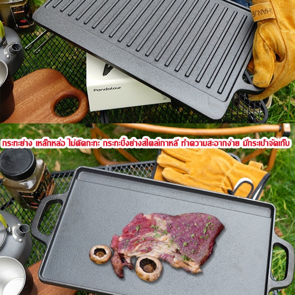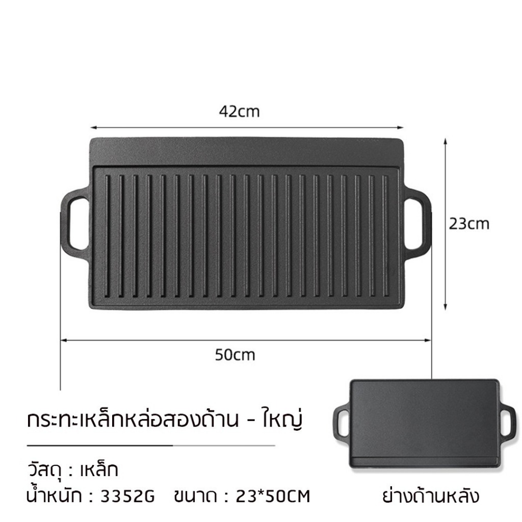 Cast Iron Grill Pan กระทะย่างเหล็กหล่อไม่ติดกระทะทอดและแบนสองด้านทำอาหารเบเกอรี่ถาดภาชนะ