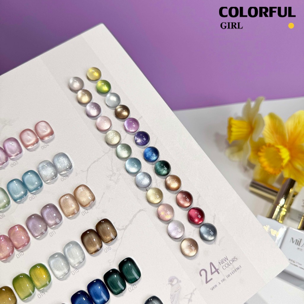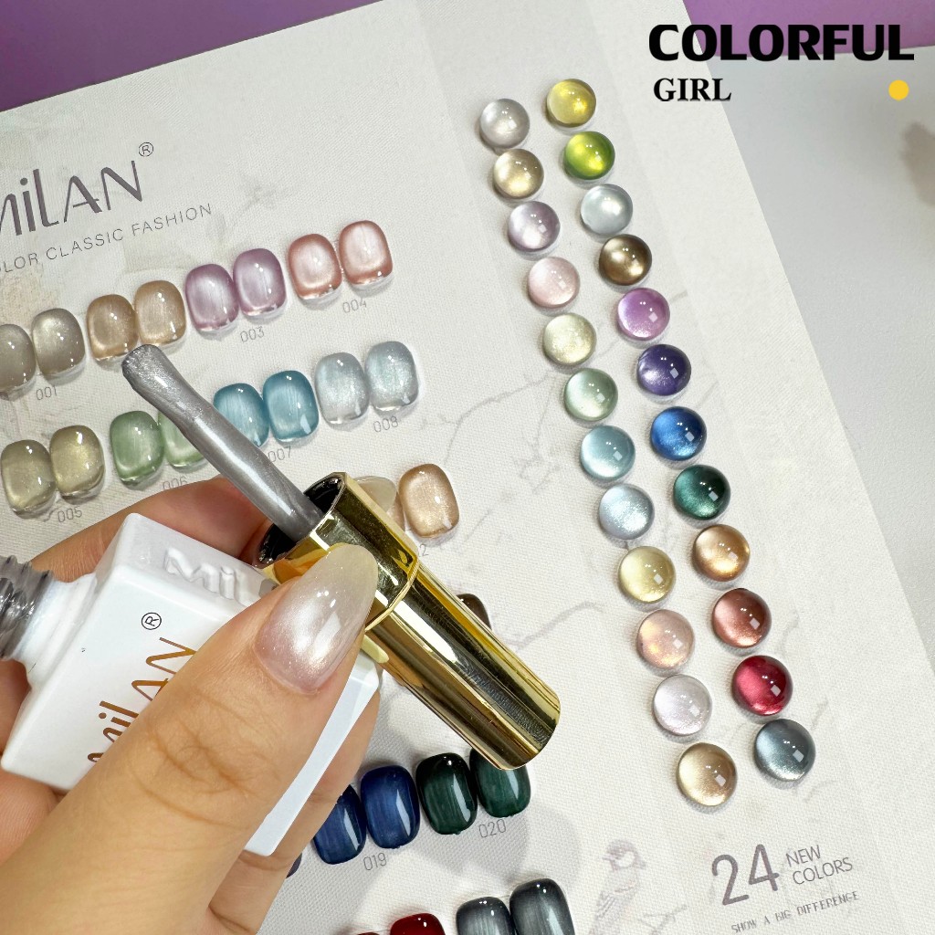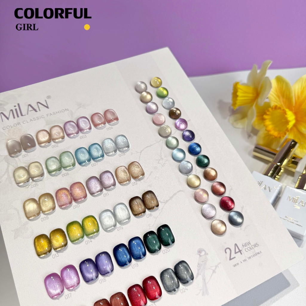【พร้อมส่ง】MILAN 24สี สีเจลแคทอายเนื้อซาติน สีเจลแคทอาย 24สี สีลูกแก้ว ฟรีชาร์ทสี Cat eye 24สี (แถม ชาร์ทสี ทามาให้แล้ว)สีสวยมาก