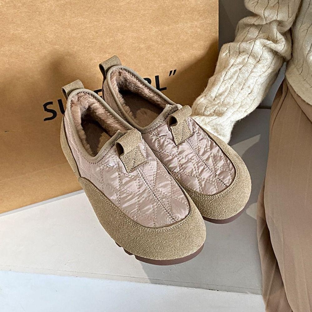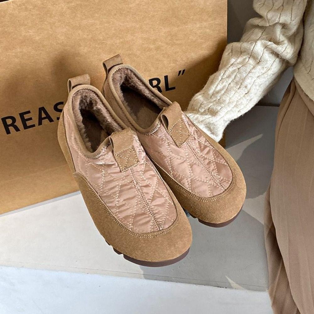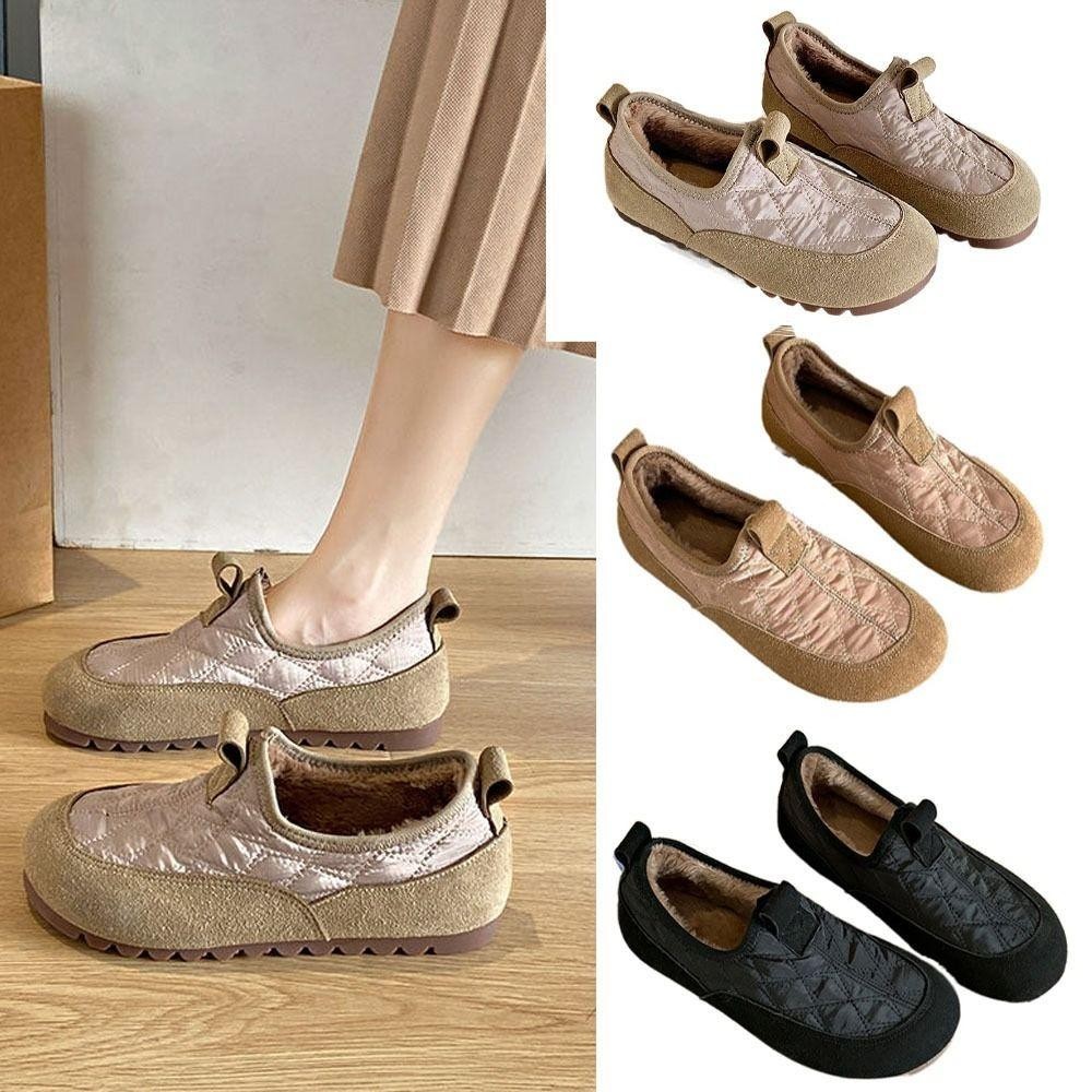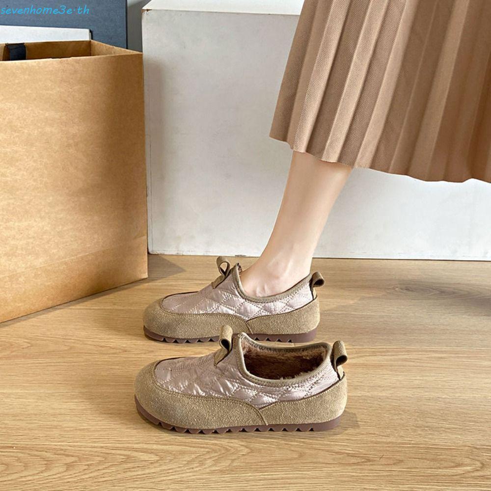 SEVENHOME3E Plush รองเท้าผู้หญิง,น้ําหนักเบาแพลตฟอร์มPlush Snow Boots,แฟชั่นHomewearกันน้ําSoft-Soledรองเท้าแบนฤดูใบไม้ร่วงฤดูหนาว