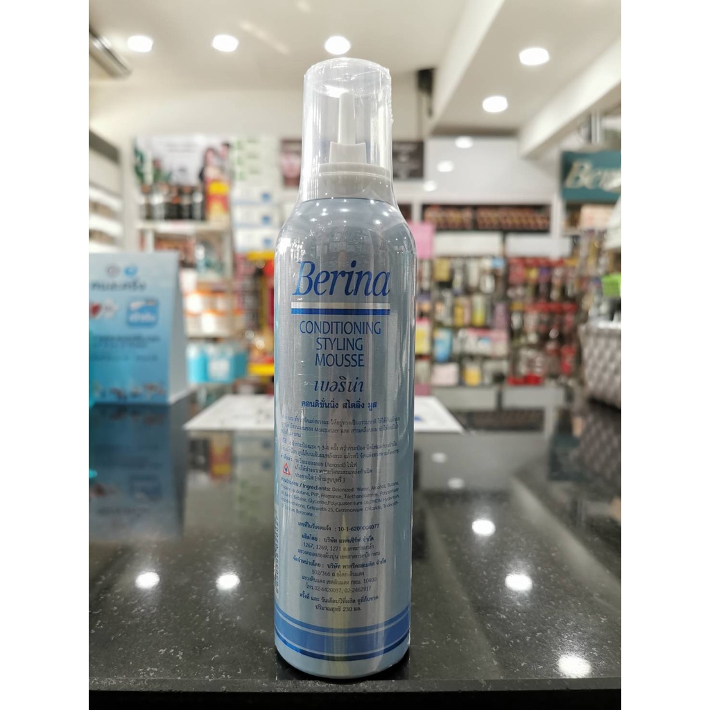 เบอริน่า คอนดิชั่นนิ่ง สไตล์ลิ่ง มูส ฟ้า (ใหญ่) 230 มล./ Berina Conditioning Styling Mousse Blue (Large) 230 Ml.