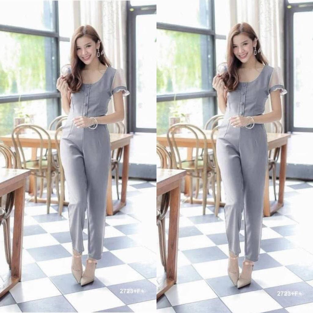 จั้มสูทแขนสั้น ขายาว สีเทา ใส่เที่ยว ใส่ทำงาน สวย ตรงปก พร้อมส่ง