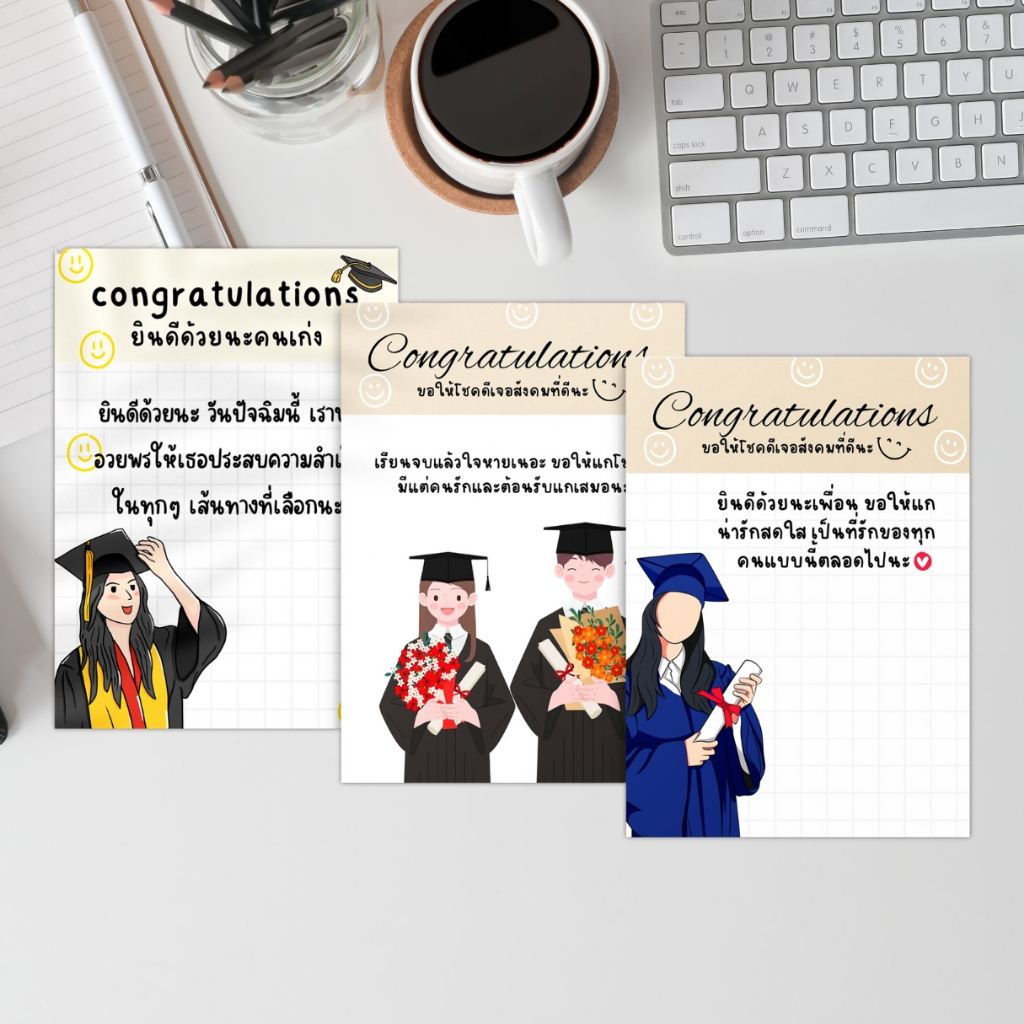 ✨การ์ดปัจฉิม ยินดีด้วยนะ Congratulations ขนาด 3*4 นิ้ว มี 24 แบบ พร้อมส่ง✨งานจริงน่ารักมาก ❤