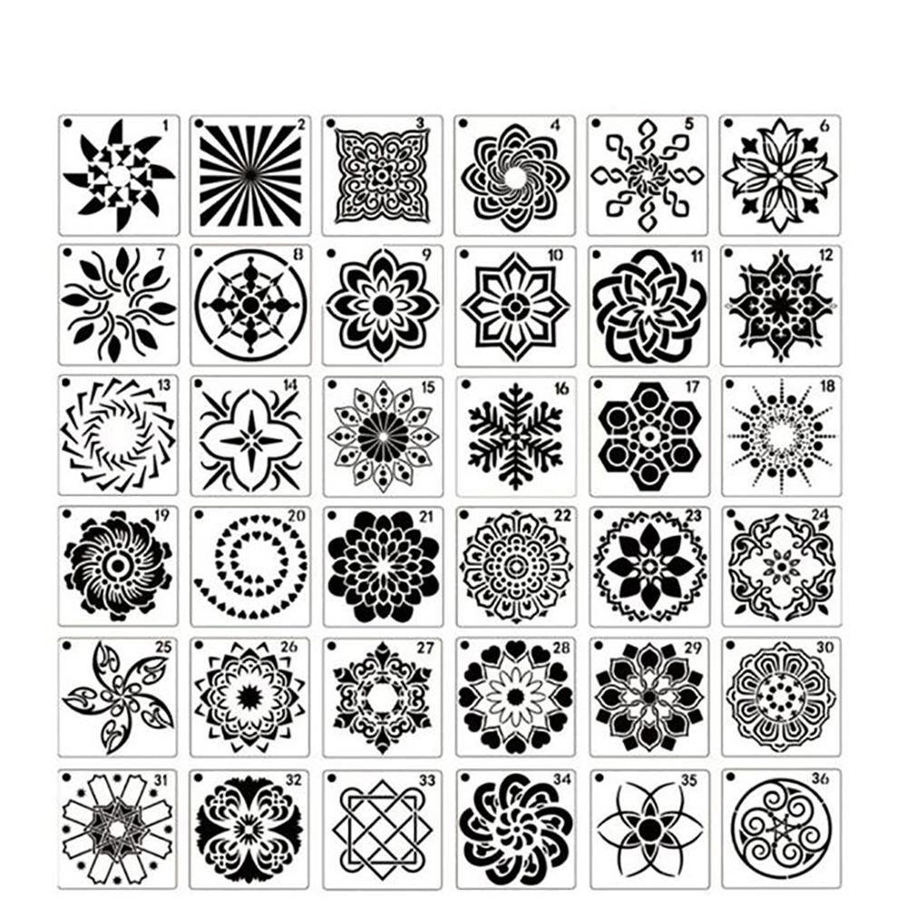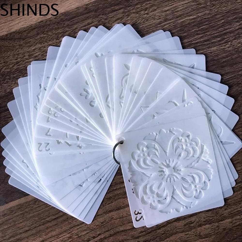 SHINDS ภาพวาดลายฉลุอัลบั้มตกแต่ง 36/56 ชิ้นผนังกระดาษลายฉลุ DIY ภาพวาดแม่แบบการ์ดทํา Hollow