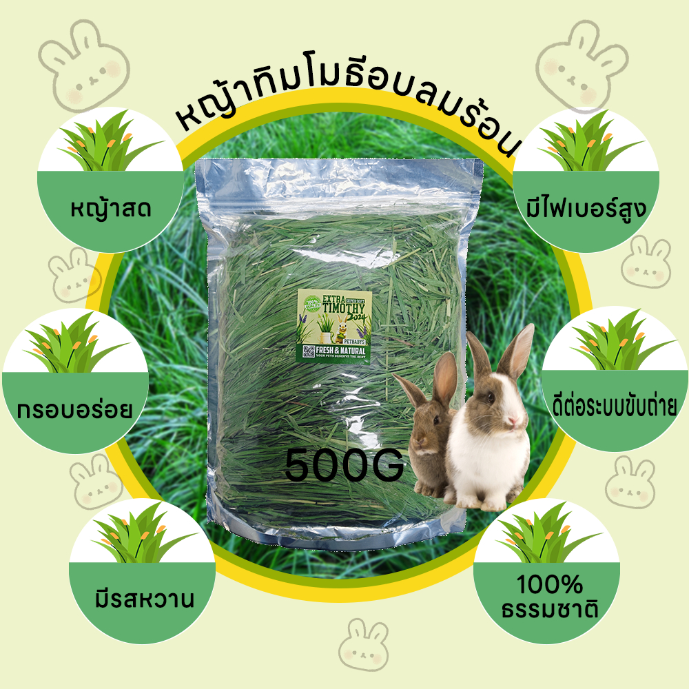 Timothy หญ้าทิโมธีอบหญ้าอบลมร้อน หญ้าอบแห้งกระต่าย หญ้าทิโมธ็ไฟเบอร์สูง500G ขนมกระต่ายเหมาะสำหรับสัตว์ฟันแทะ