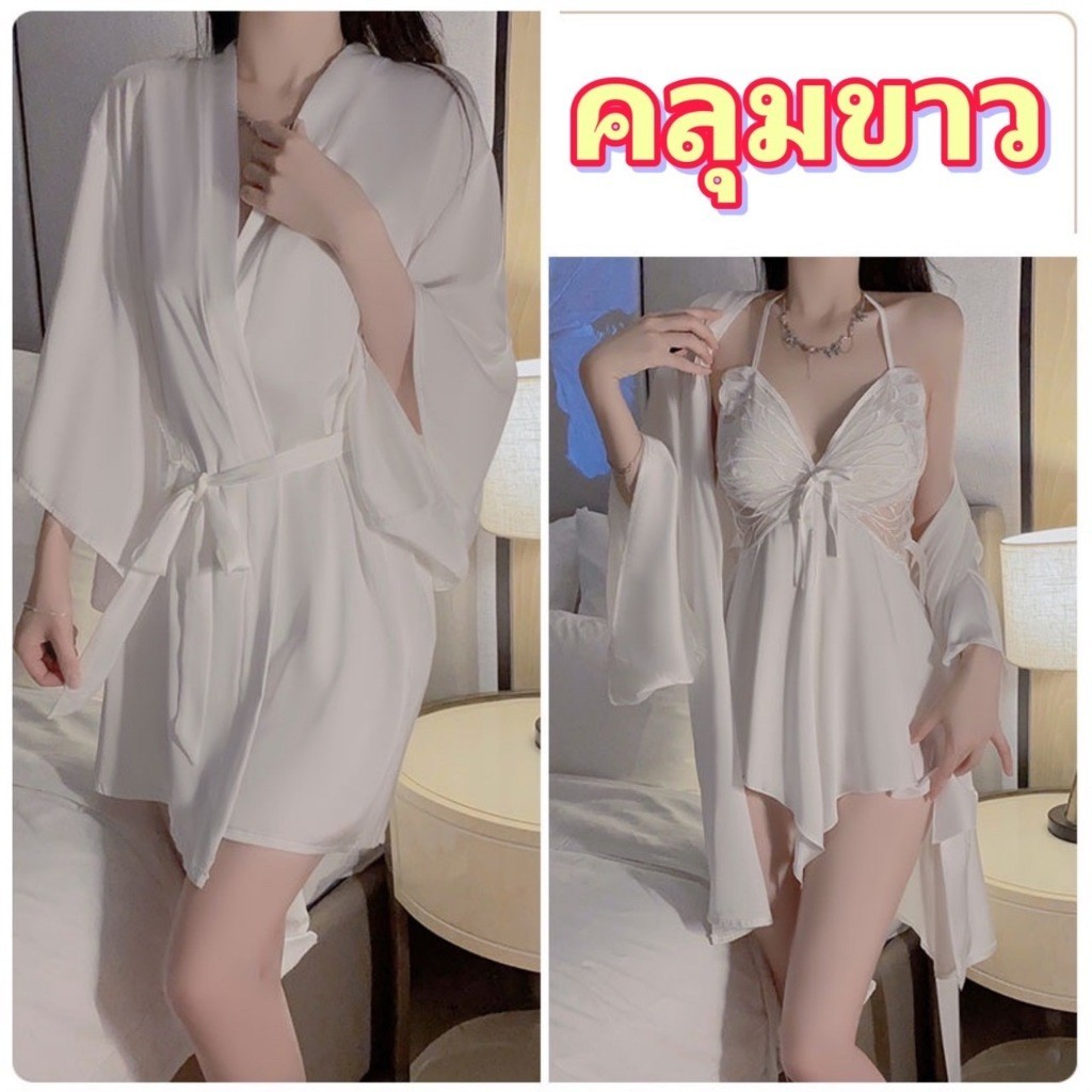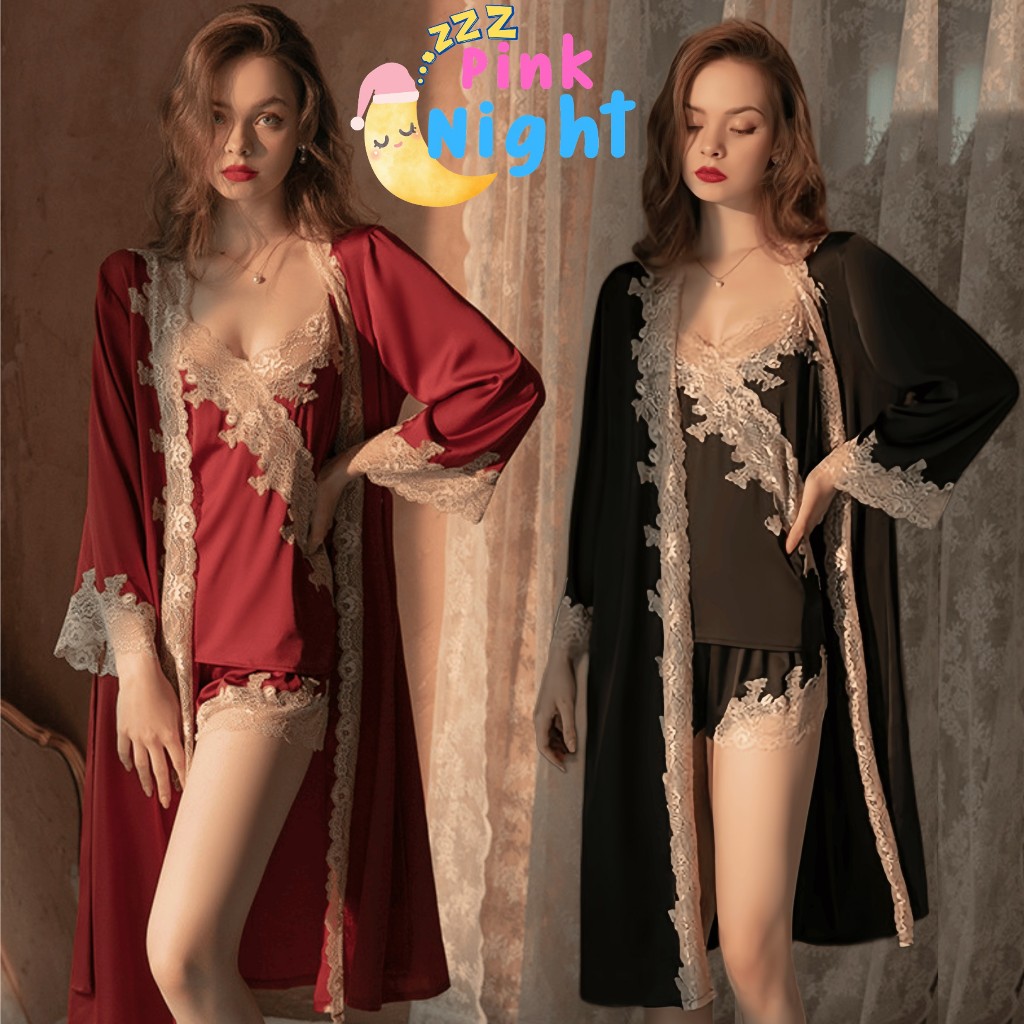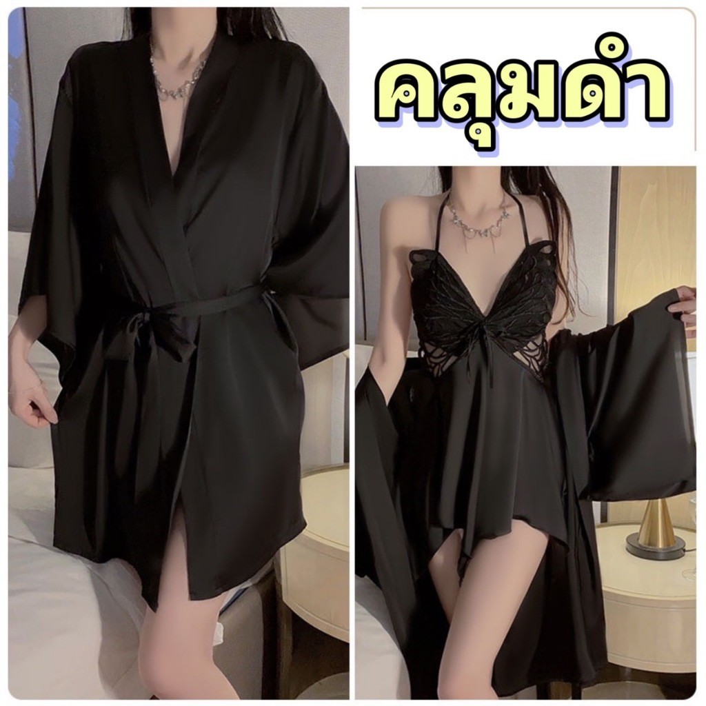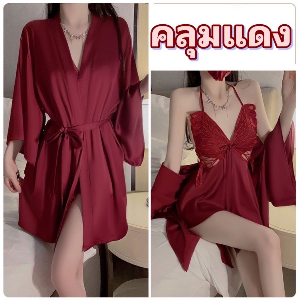 PINK NIGHT ชุดคลุมนอนแฟชั่น ชุดคลุมนอน ชุดคลุมคาดเอว 💖ไซต์ M-2XL นน 40-80kg ชุดคลุมแขนยาวน่ารัก SET-497