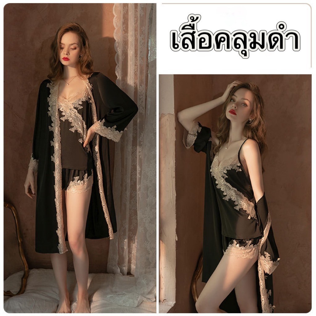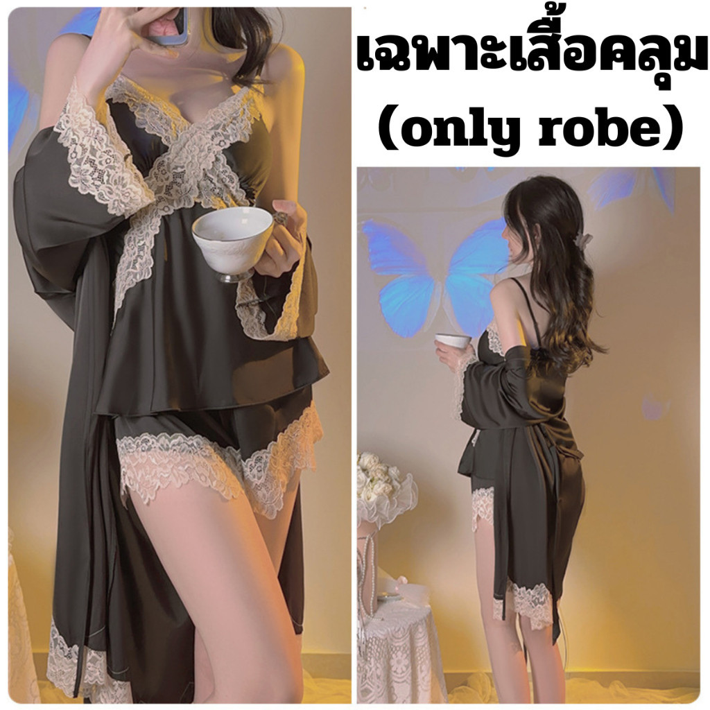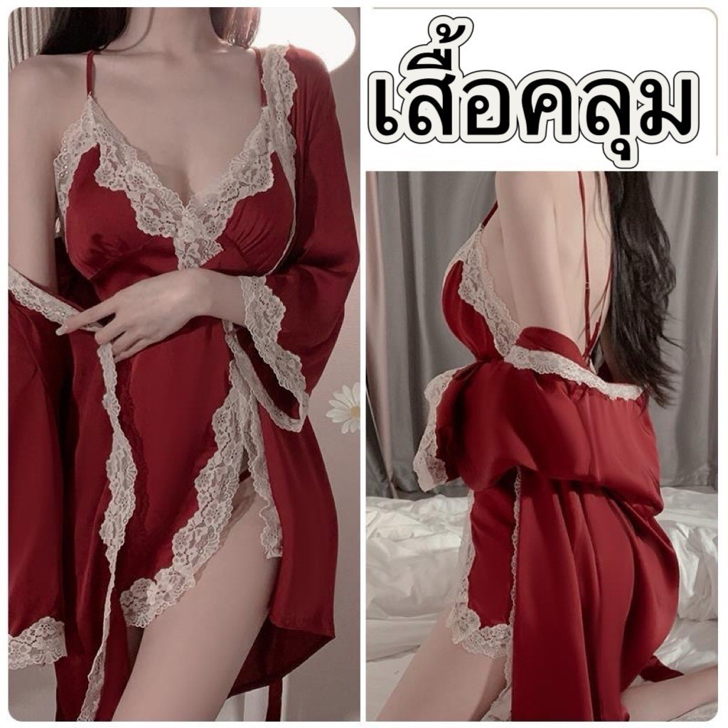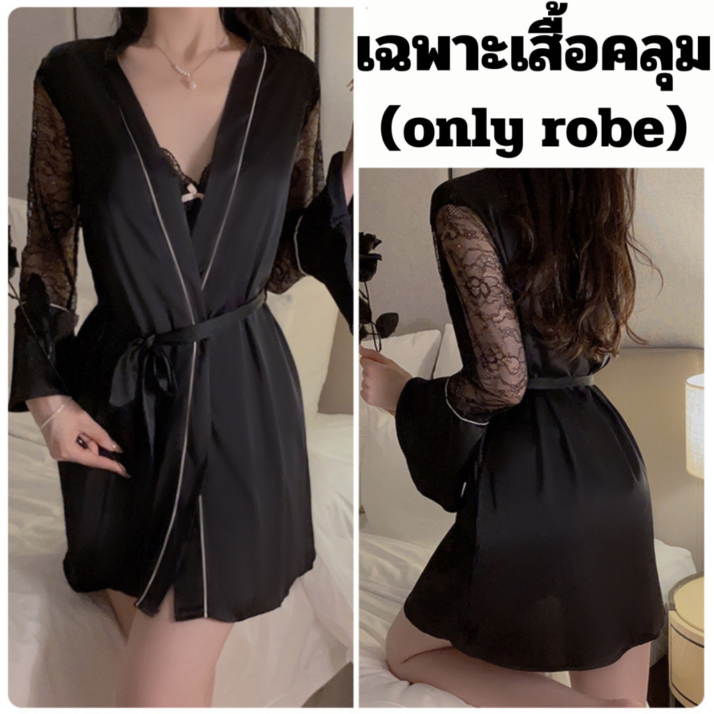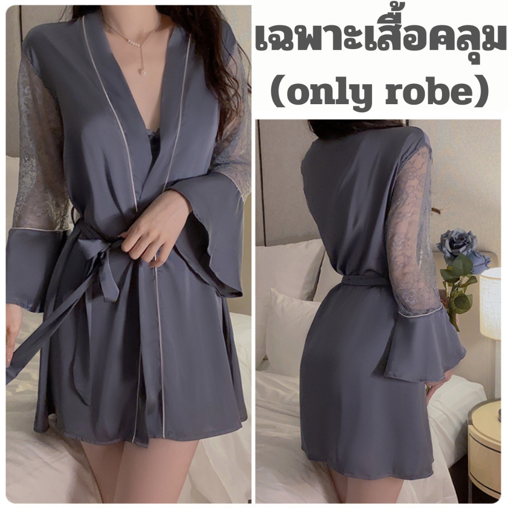 PINK NIGHT ชุดคลุมนอนแฟชั่น ชุดคลุมนอน ชุดคลุมคาดเอว 💖ไซต์ M-2XL นน 40-80kg ชุดคลุมแขนยาวน่ารัก SET-497