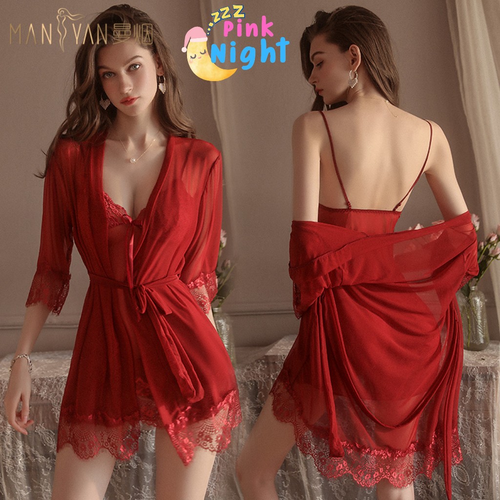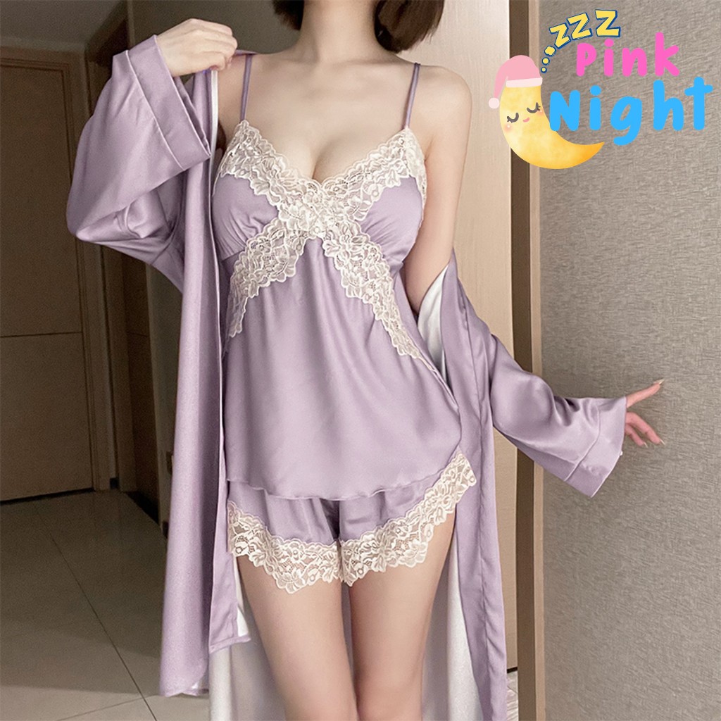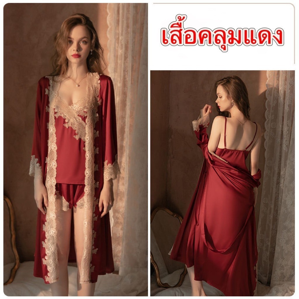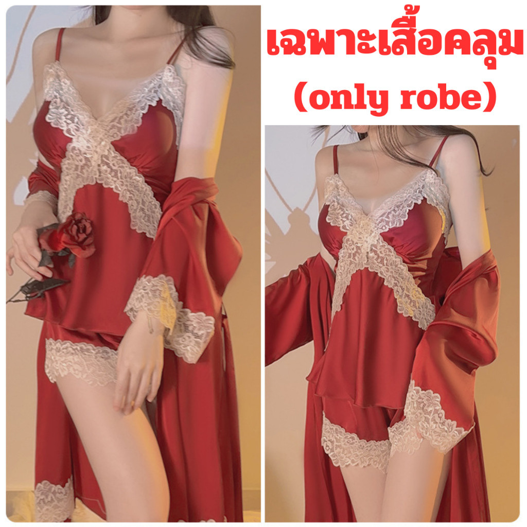 PINK NIGHT ชุดคลุมนอนแฟชั่น ชุดคลุมนอน ชุดคลุมคาดเอว 💖ไซต์ M-2XL นน 40-80kg ชุดคลุมแขนยาวน่ารัก SET-497