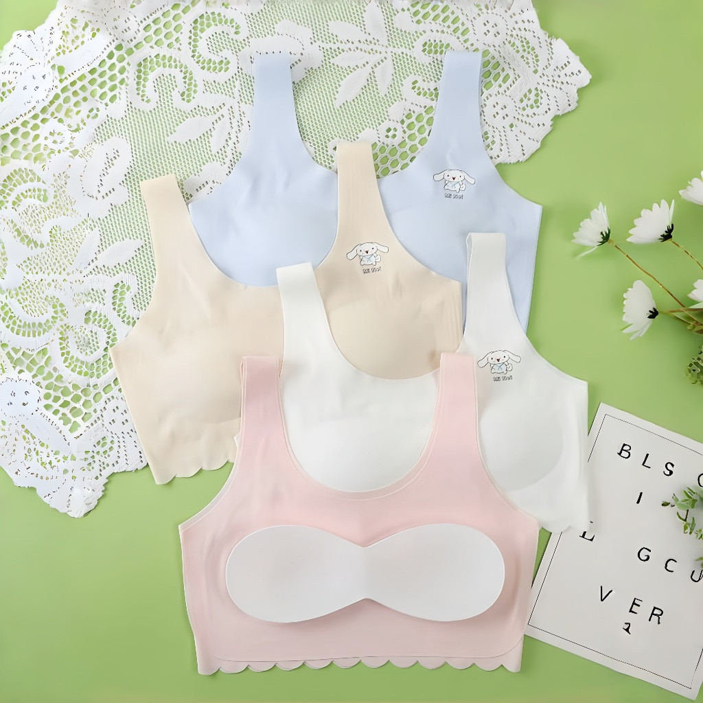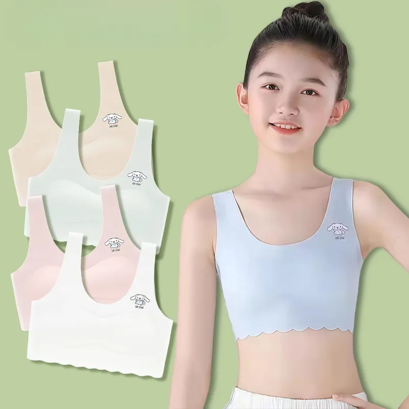แพ็คเกจ 4 ชิ้น กางเกงในและเสื้อซับในเด็กผู้หญิง แบบสวม มีกระดุมถอดได้ สไตล์สำหรับนักเรียนและวัยรุ่น