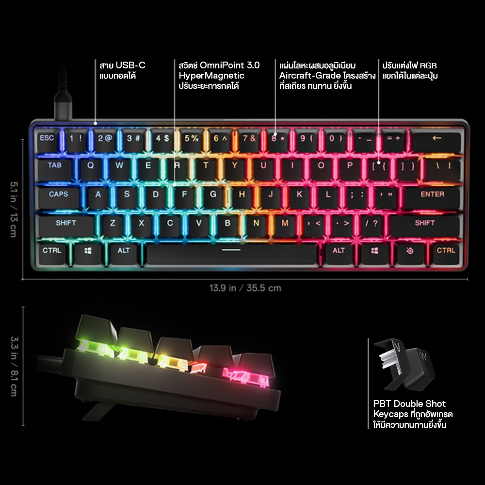 SteelSeries Apex Pro Mini Gen 3 HyperMagnetic Gaming Keyboard คีย์บอร์ดเกมมิ่ง 60% ไฟ RGB
