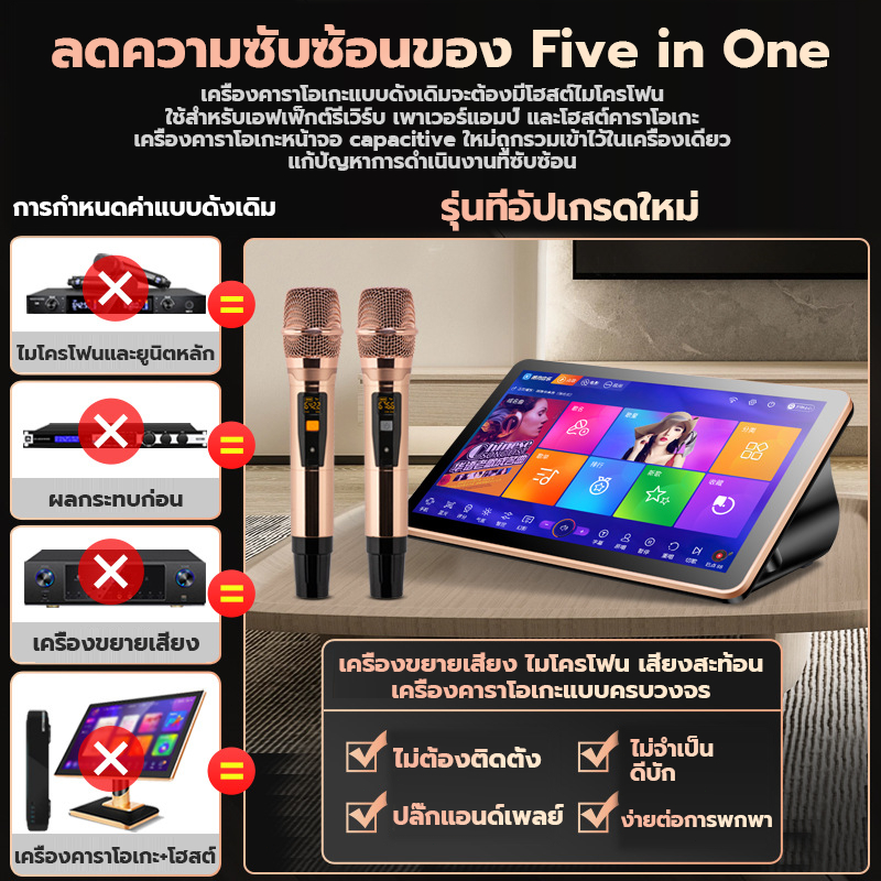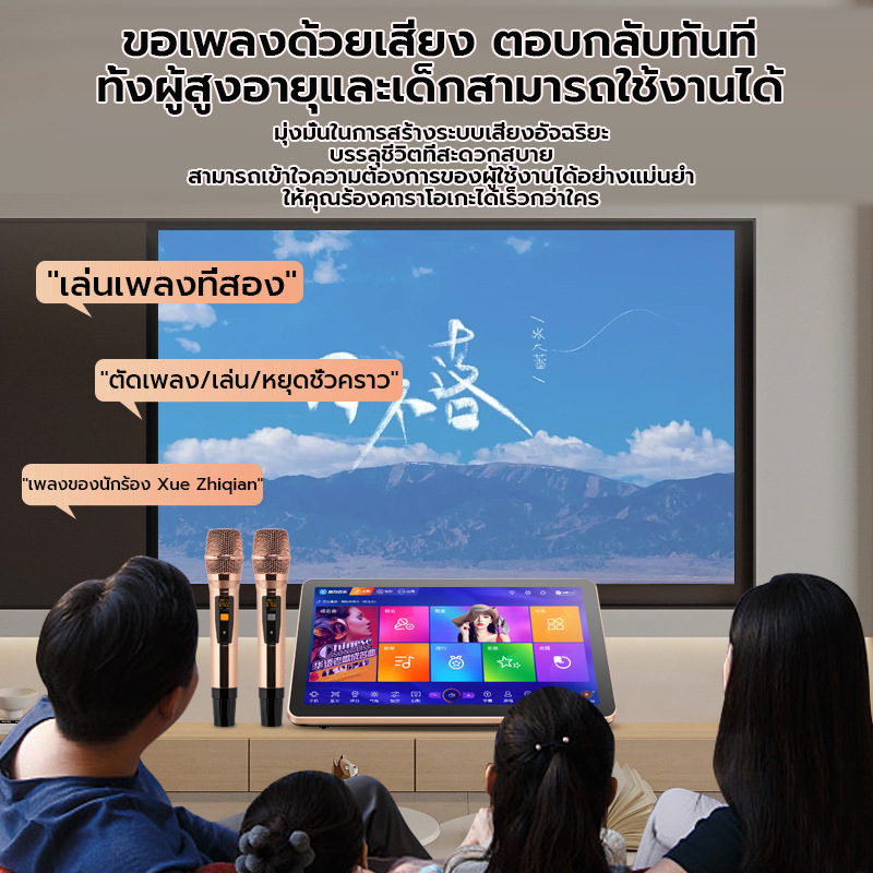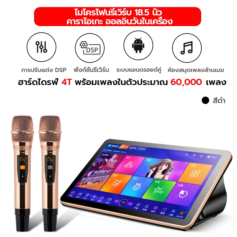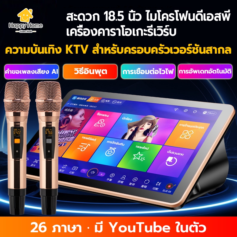 (ฟรี ไมค์ลอย 2ตัว)เครื่องคาราโอเกะ KTV ในบ้านพร้อมหน้าจอสัมผัสระบบเสียง Bluetooth เครื่องเล่นเพลงดิจิตอล DSP YouTube