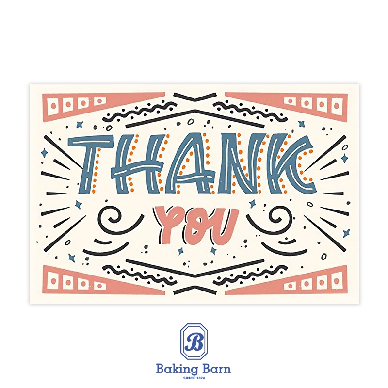 Baking Barn (50 ชิ้น/แพ็ค) Thank you card การ์ดขอบคุณ การ์ดอวยพร ของขวัญ การ์ดขอบคุณ