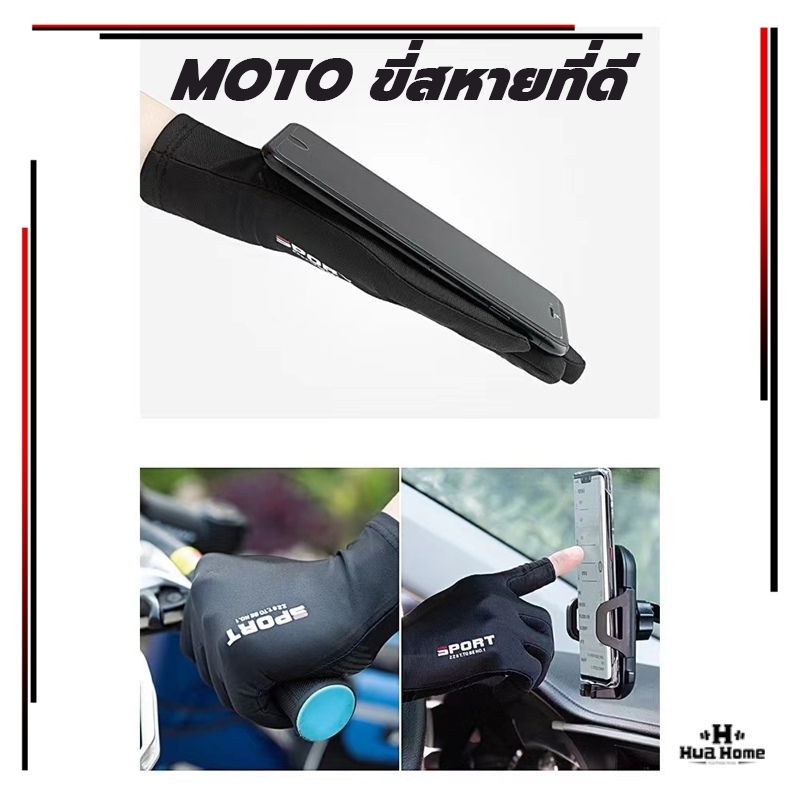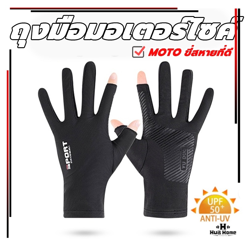 ถุงมือมอเตอร์ไซค์ (1คู่ ) ถุงมือระบายอากาศ ป้องกันการลื่นไถล ป้องกันรังสีอัลตราไวโอเลต UPF50+ ปั่นจักรยาน ตกปล