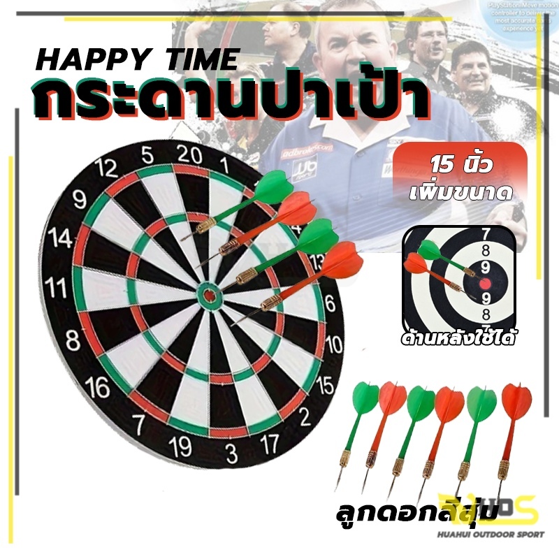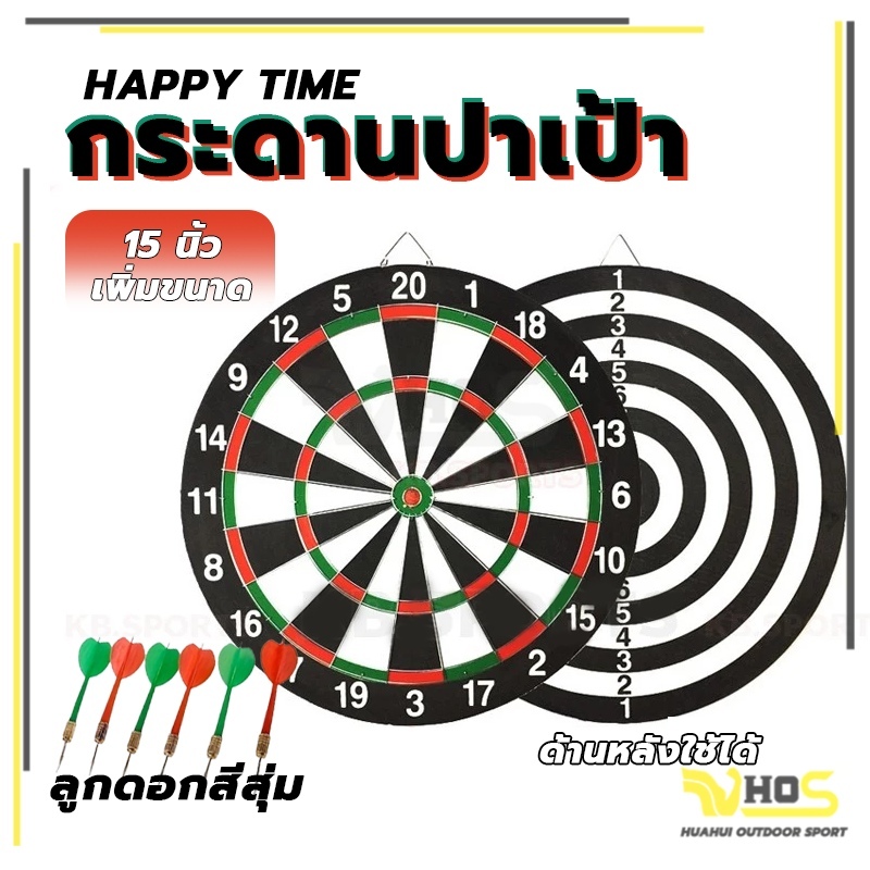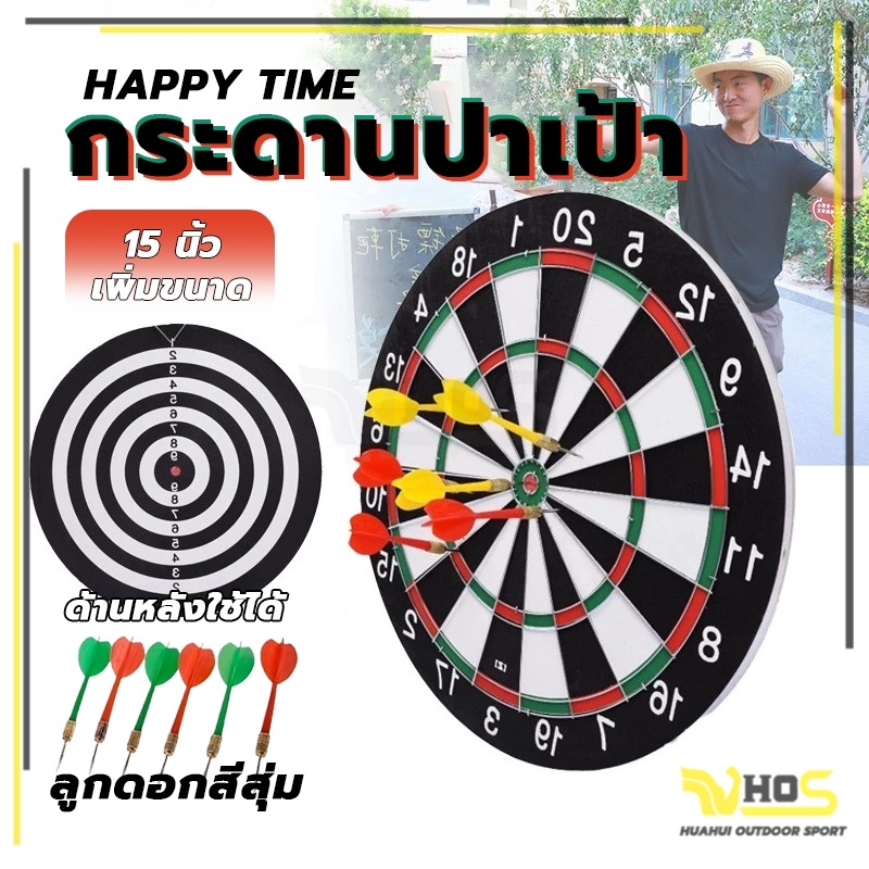 กระดานปาเป้า กระดานปาเป้าไม้ ลูกดอกปาเป้า ขนาด 15 นิ้ว ลูกดอก 6 ลูก ปาได้ 2 หน้า ของเล่นเด็ก เกมส์ปาเป้า
