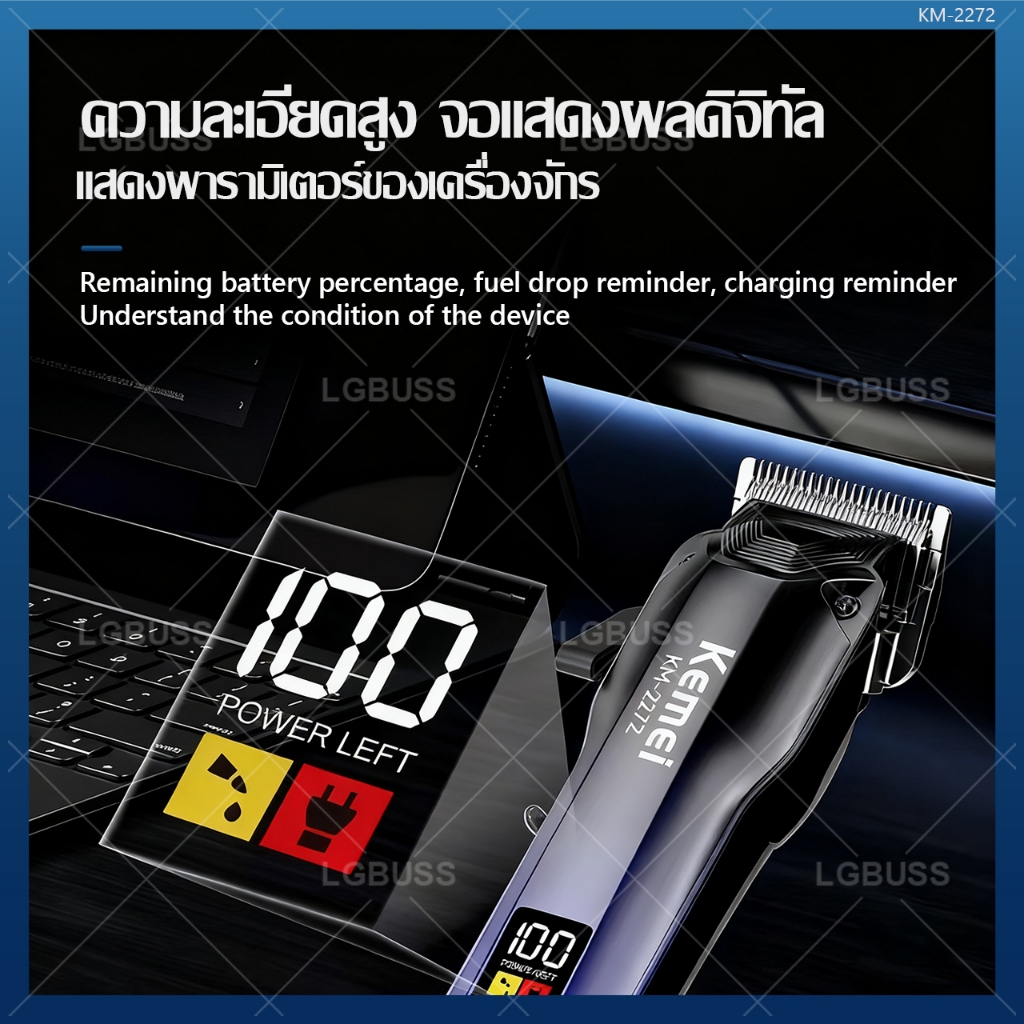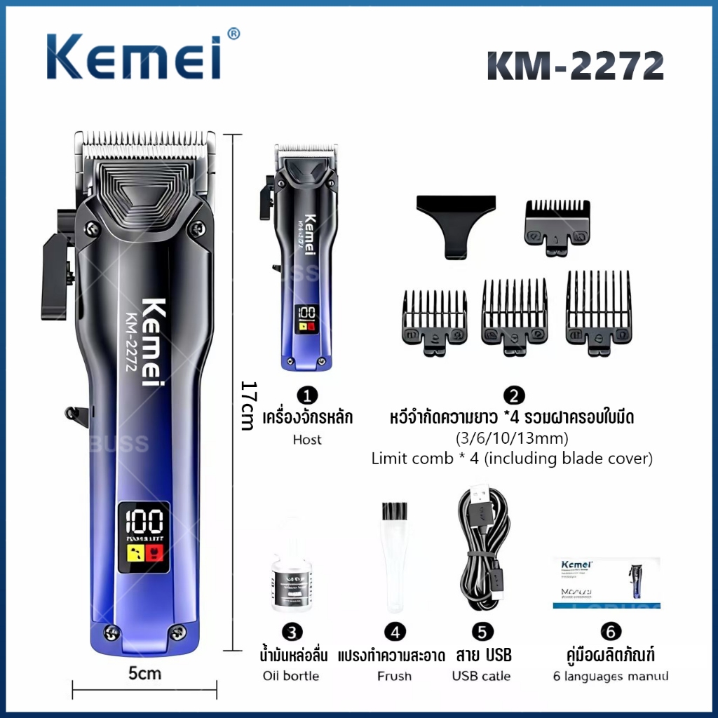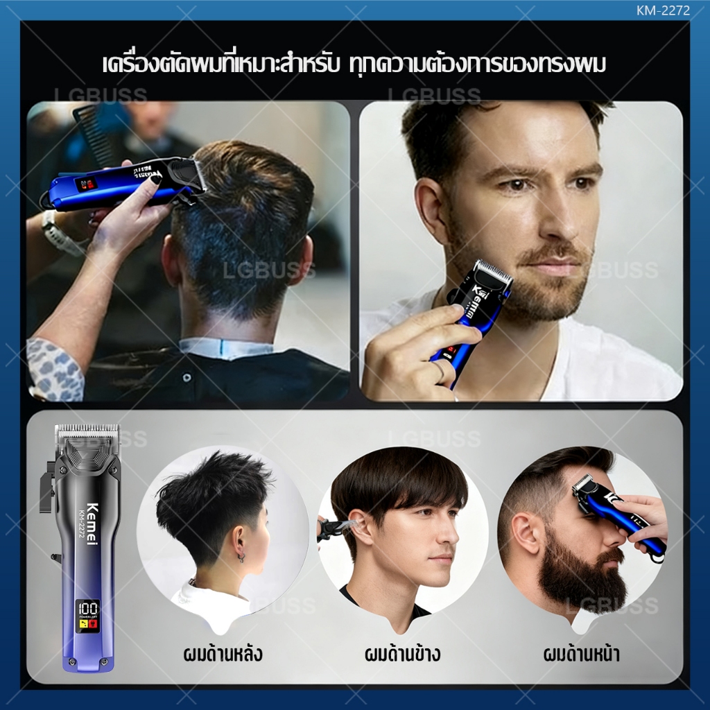 ✂️Kemei-2272 ✂️จัดส่งทันที ✂️ปัตตาเลี่ยนตัดผม ปัตตาเลี่ยนไร้สาย ไฟฟ้า หน้าจอ LCD ปรับได้ ชาร์จ USB รับประกันสามปี