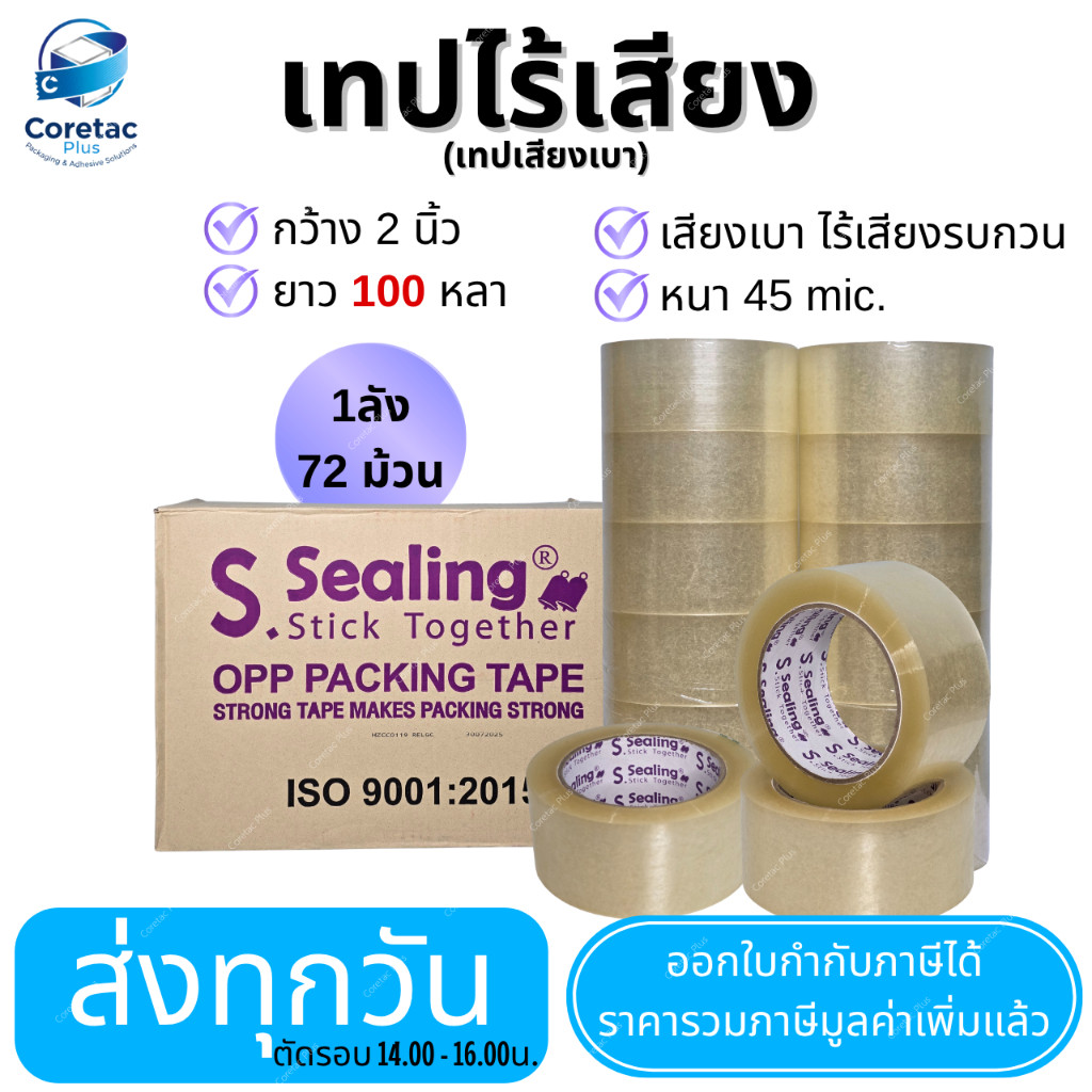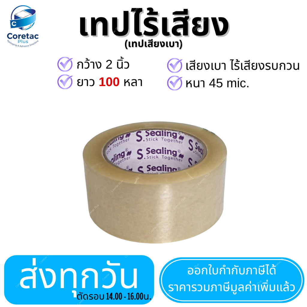 เทปไร้เสียง (เทปเสียงเบา) เทปใส "ยกลัง ขนาด 2"45- 100หลา กาวเหนียว ติดแน่น เทปปิดกล่องคุณภาพสูง