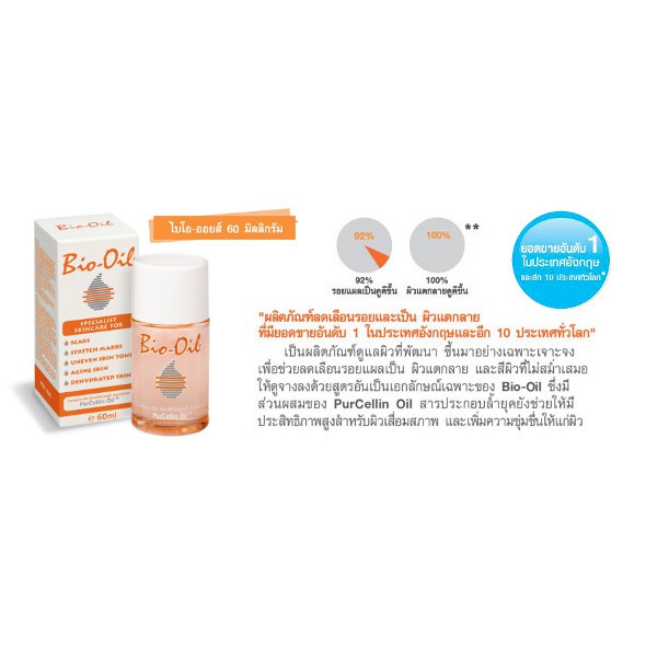 Bio Oil 25 / 60 ml. ไบโอออยล์ ลดผิวแตกลาย ปรับสีผิวให้สม่ำเสมอ Bio-Oil