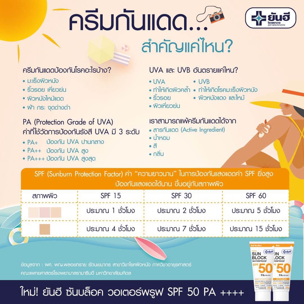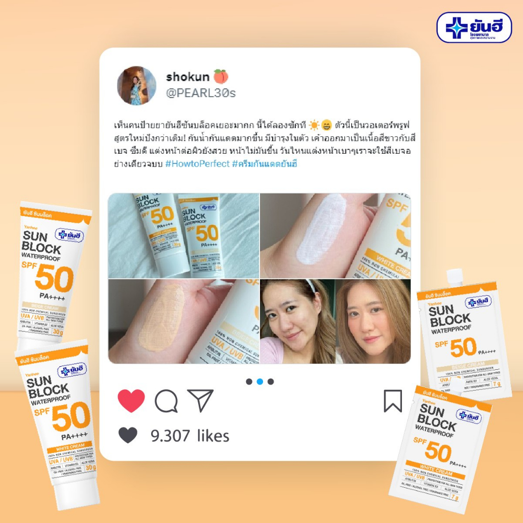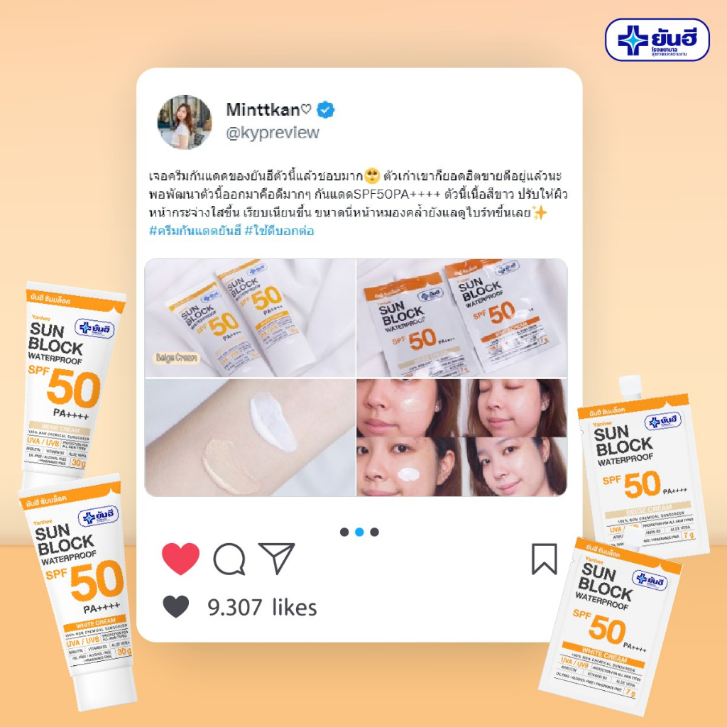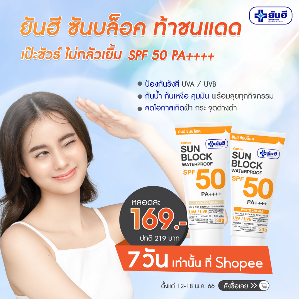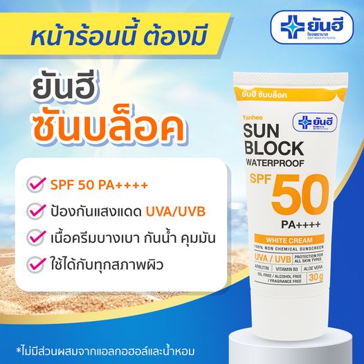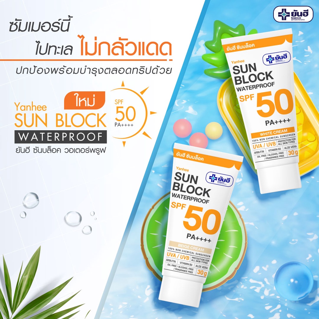 ยันฮี ครีมกันแดด ซันบล็อค วอเตอร์พรูฟ SPF50 PA ++++ 30 g. เนื้อบางเบา Yanhee Sunblock