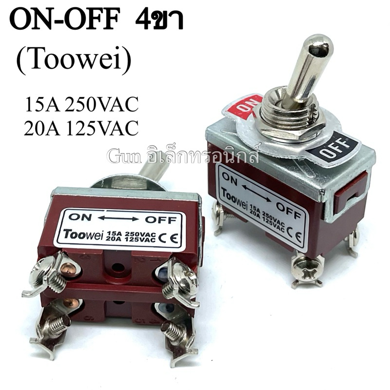 สวิตช์โยก ON-OFF 4ขา แบบล็อก ยี่ห้อ Toowei 15A250VAC. 20A125VAC อย่างดี สินค้าสามารถออกบิลได้