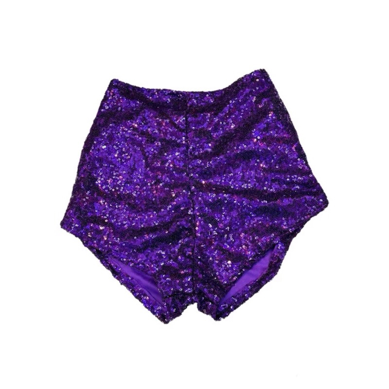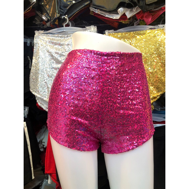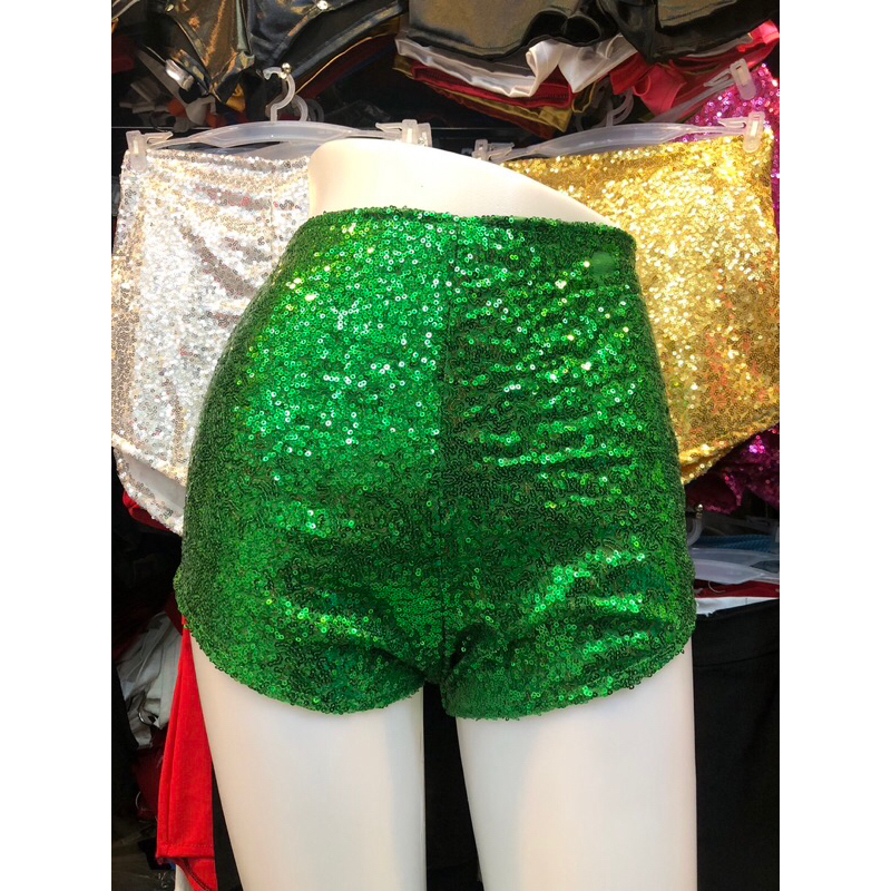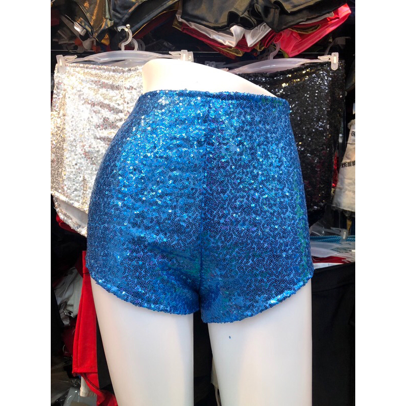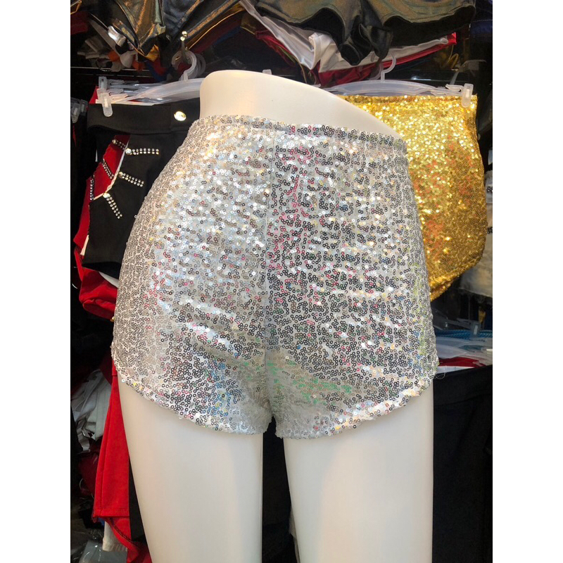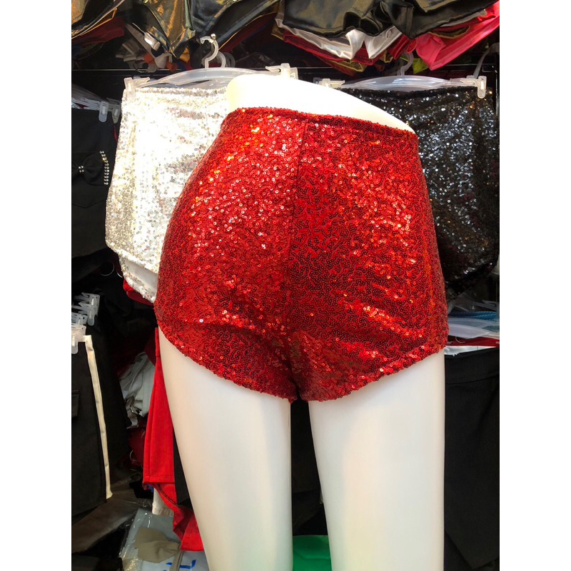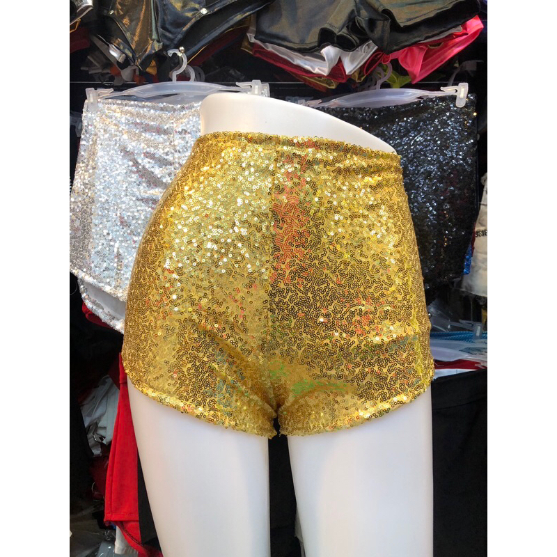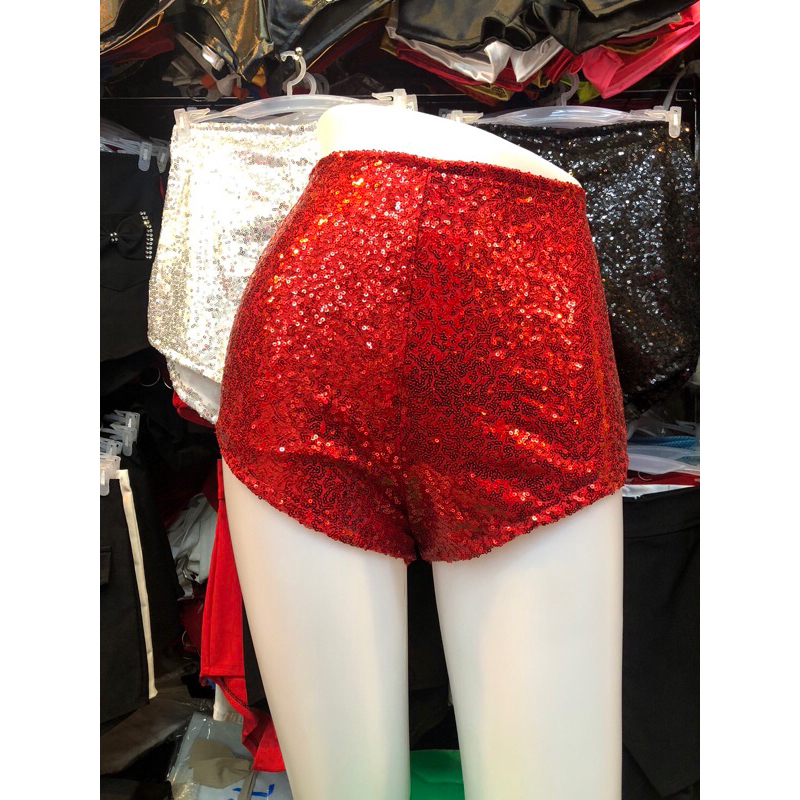 #กางเกงขาสั้นเอวสูง ผ้าเกร็ดเลื่อมโดนไฟ วิบวับ สวยงาม หรูดูแพง#