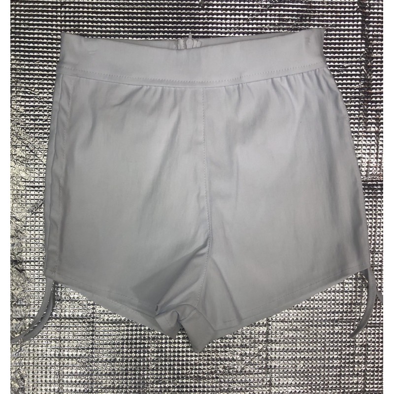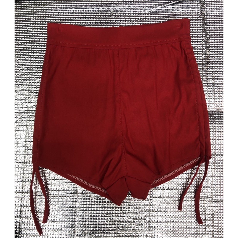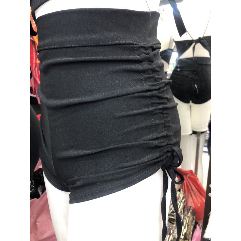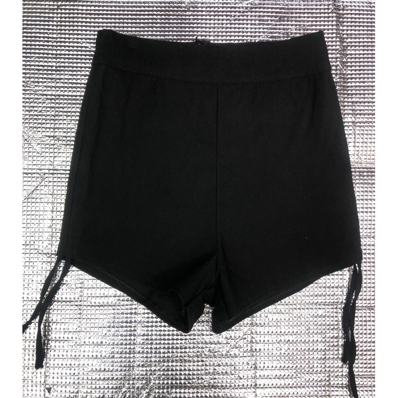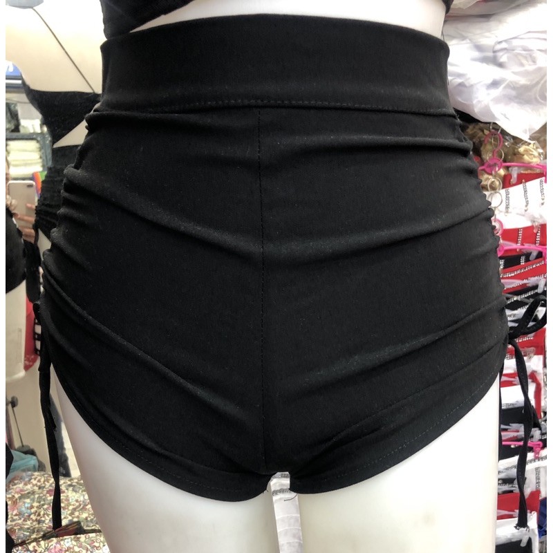 #กางเกงขาสั้นเอวสูง ตกแต่งด้านข้างด้วยเชือกไว้สำหรับรูดด้านข้างผ้ายืด#
