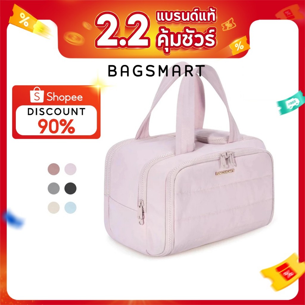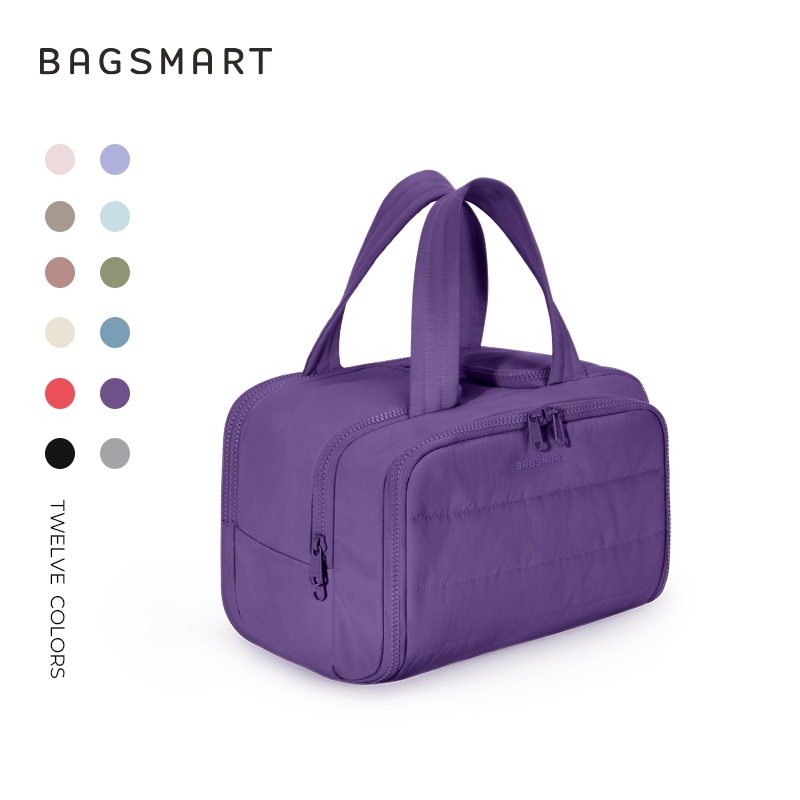 BAGSMART กระเป๋าแป้งน้ําหนักเบา Puffy Cosmetic Makeup Bag กระเป๋าเดินทางสําหรับผู้หญิง, ออแกไนเซอร์พร้อมที่จับสําหรับอุปกรณ์เสริม, จําเป็น, เครื่องใช้ในห้องน้ํา