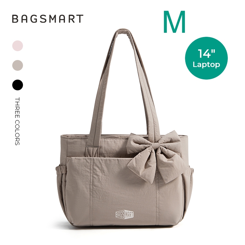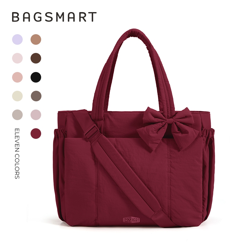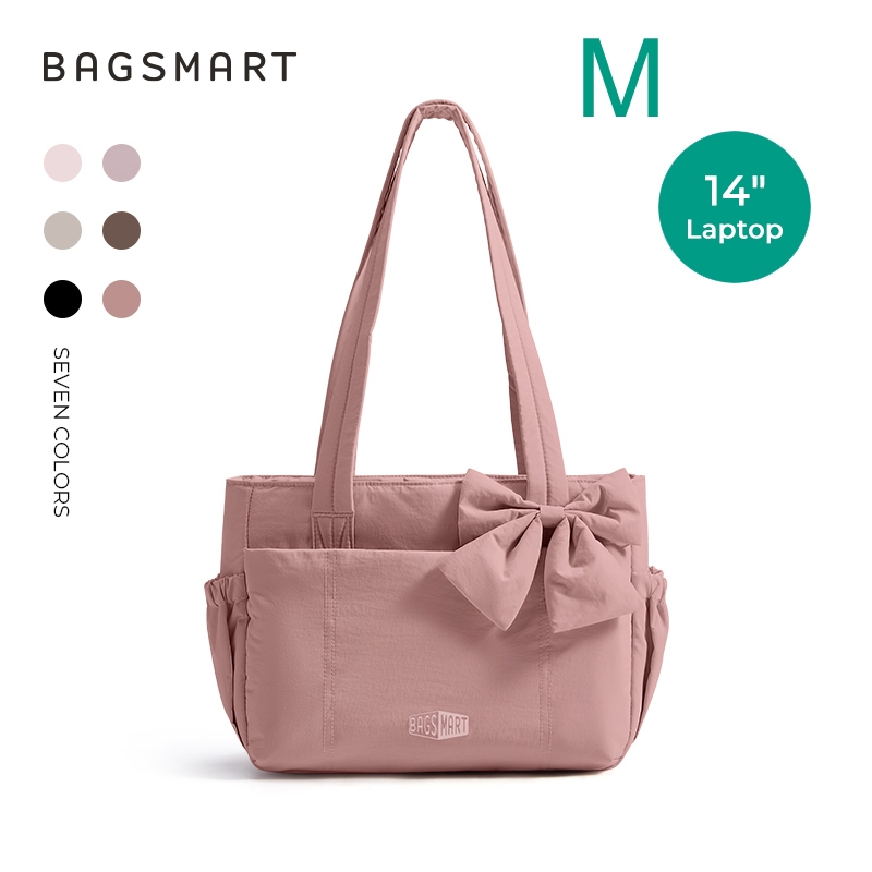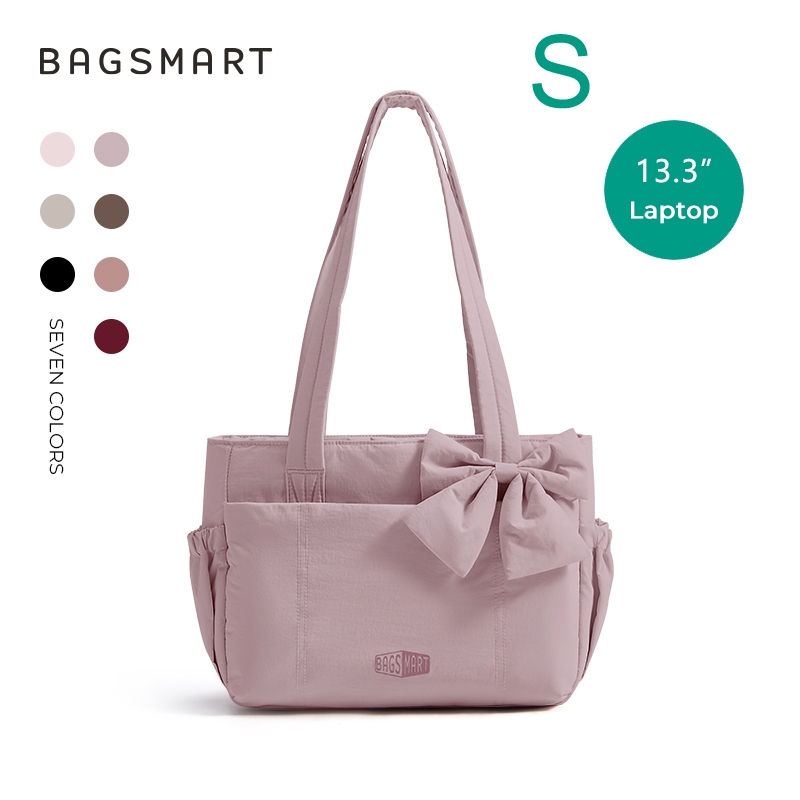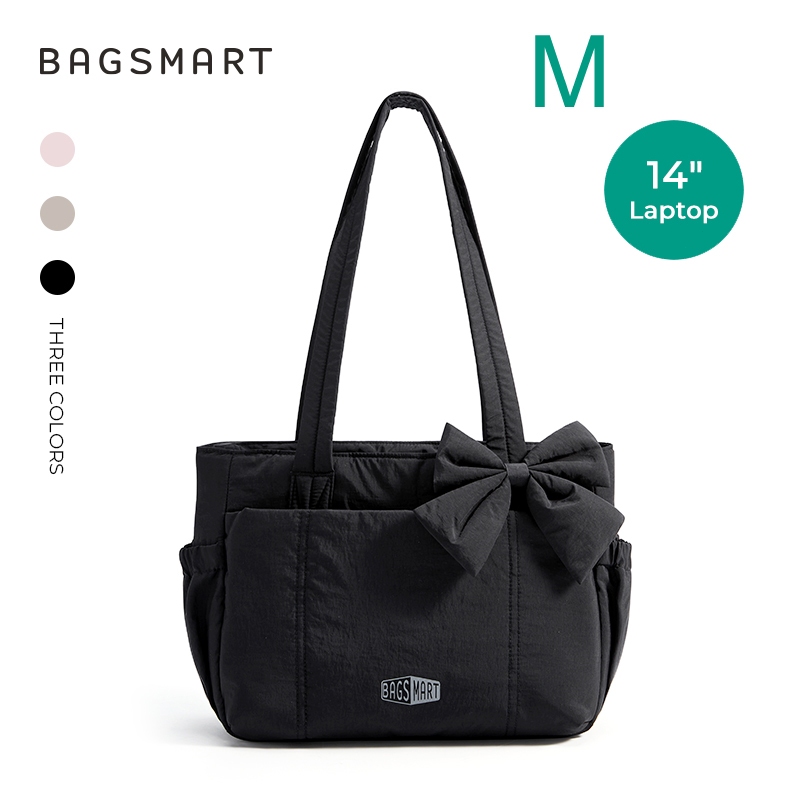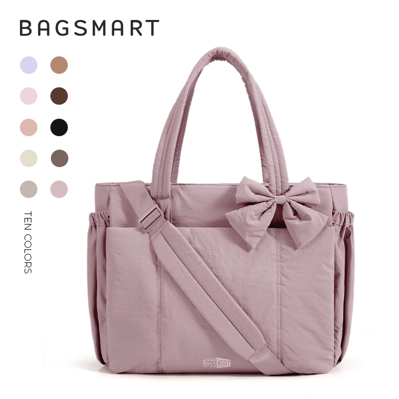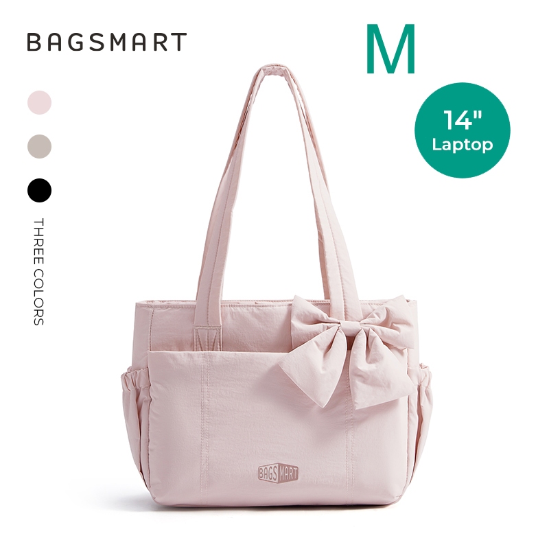 BAGSMART โบว์ Tote Bag สำหรับผู้หญิง ไหล่ความจุขนาดใหญ่พร้อมกระเป๋าถุงมือช่อง