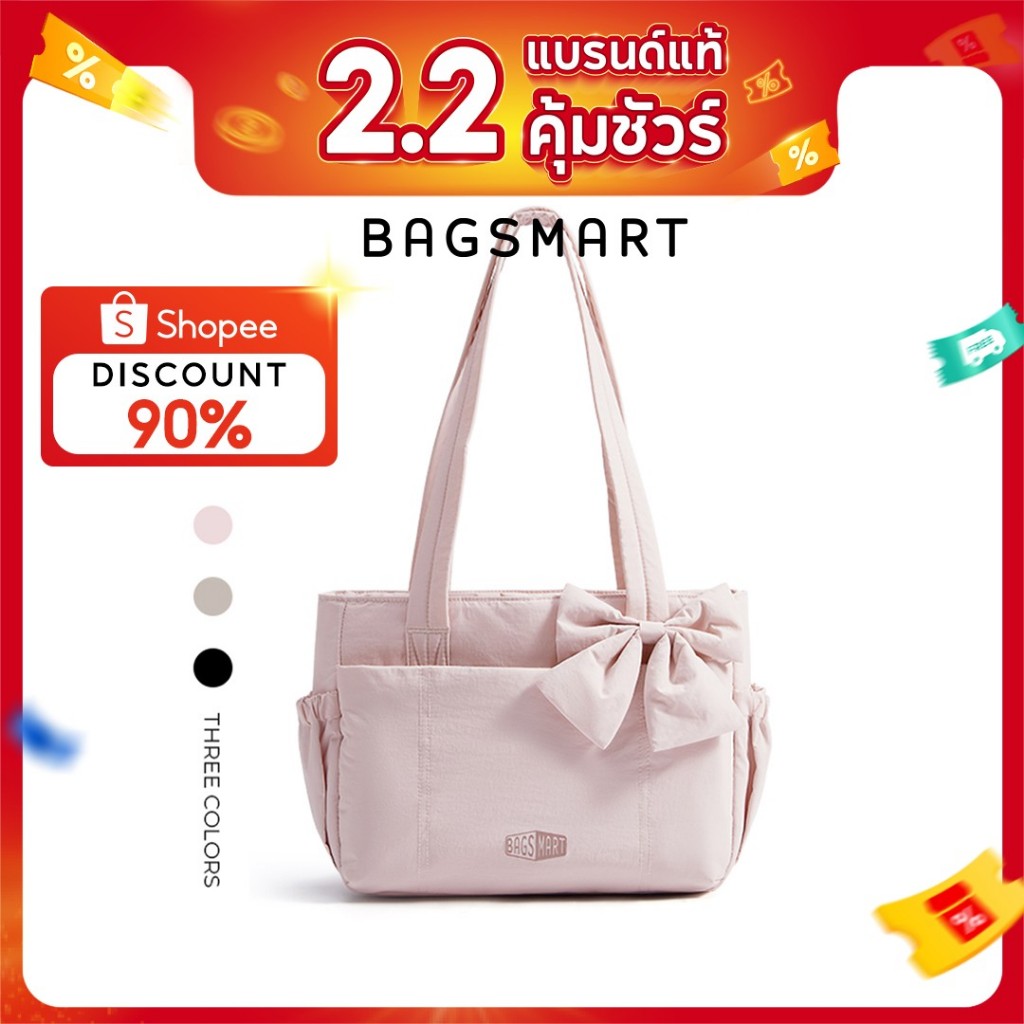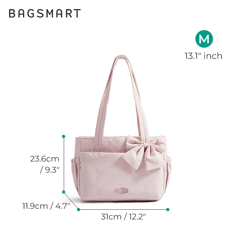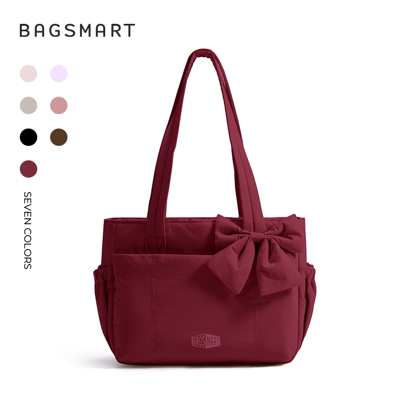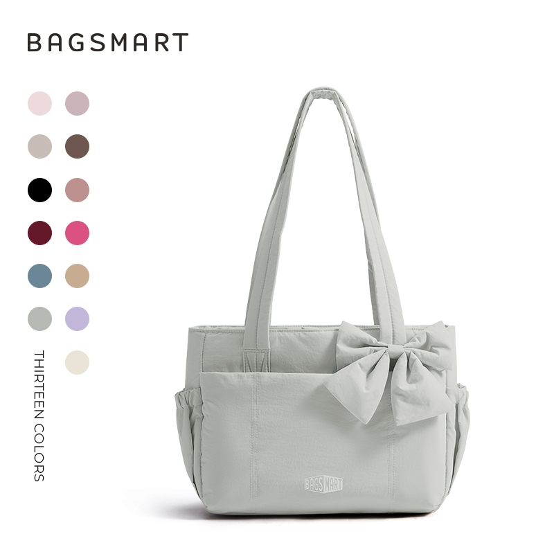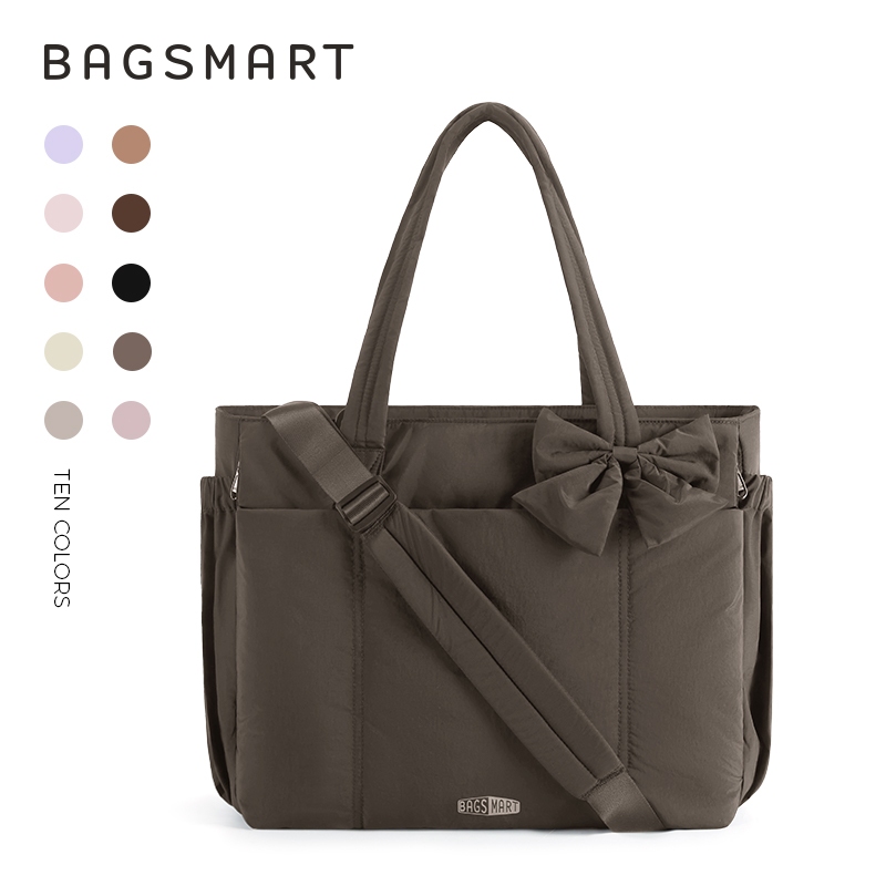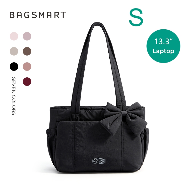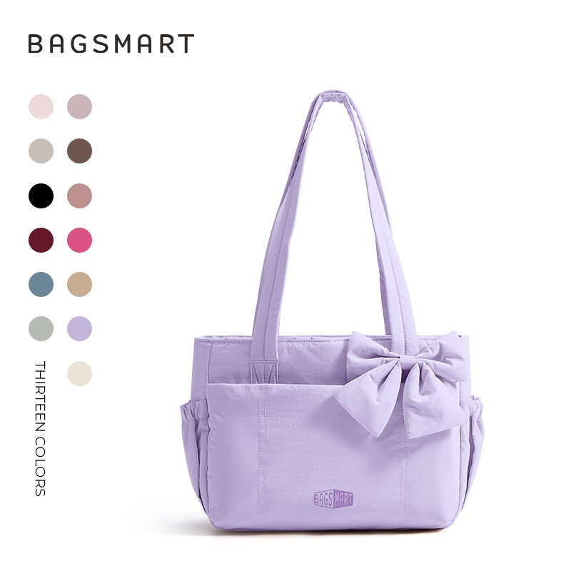 BAGSMART โบว์ Tote Bag สำหรับผู้หญิง ไหล่ความจุขนาดใหญ่พร้อมกระเป๋าถุงมือช่อง