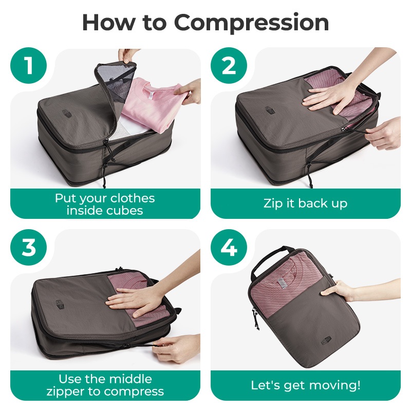 BAGSMART ใหม่ Travel Packing Cubes การบีบอัด 6 ชิ้นกระเป๋าเดินทางกระเป๋ากระเป๋ากระเป๋าเดินทางขยายกระเป๋าเก็บเสื้อผ้า