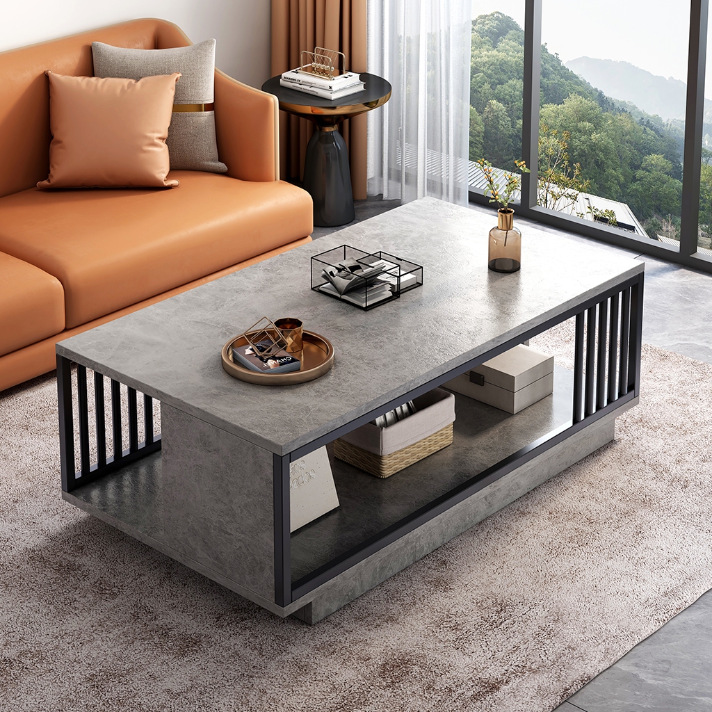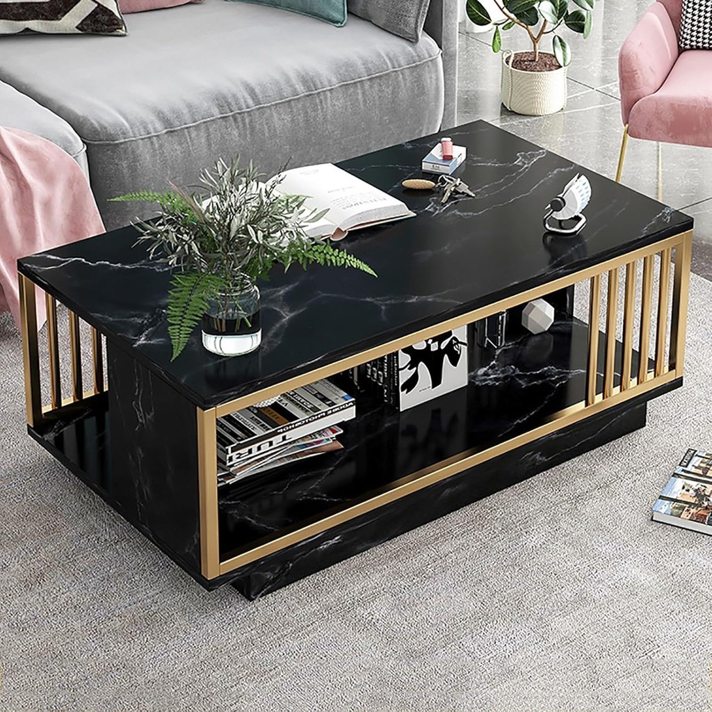 โต๊ะกาแฟ 100CM/120CM โต๊ะกลางโซฟา 2ชั้น อปหินอ่อนเทียมสไตล์โมเดิร์น เหมาะสำหรับรับแขก นั่งจิบชา Table