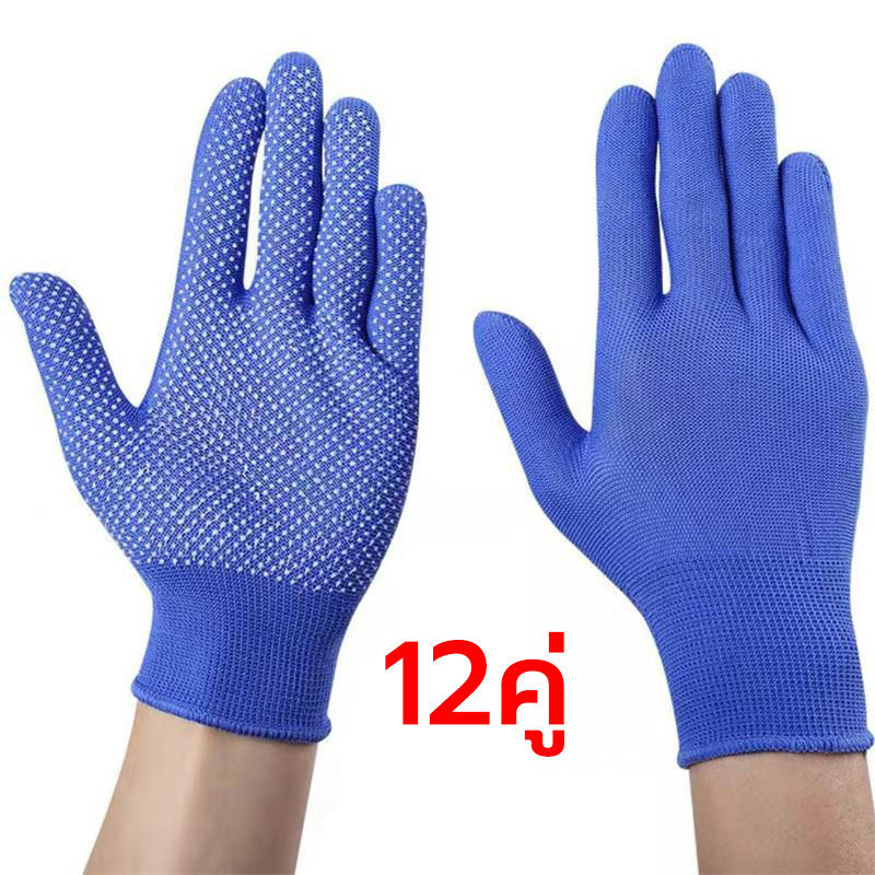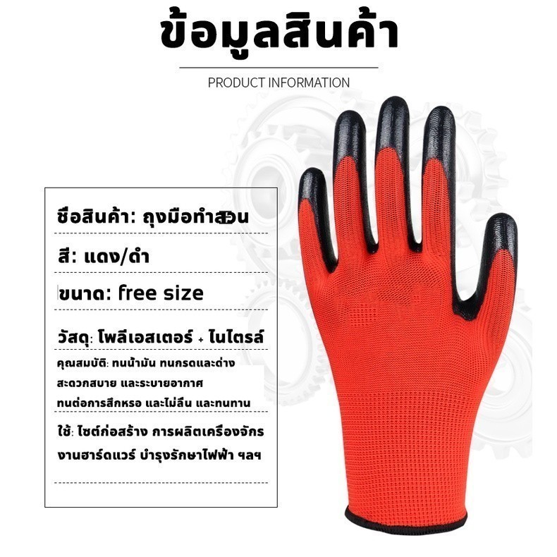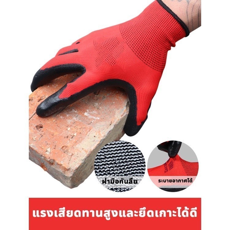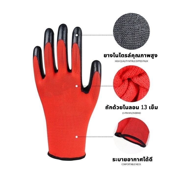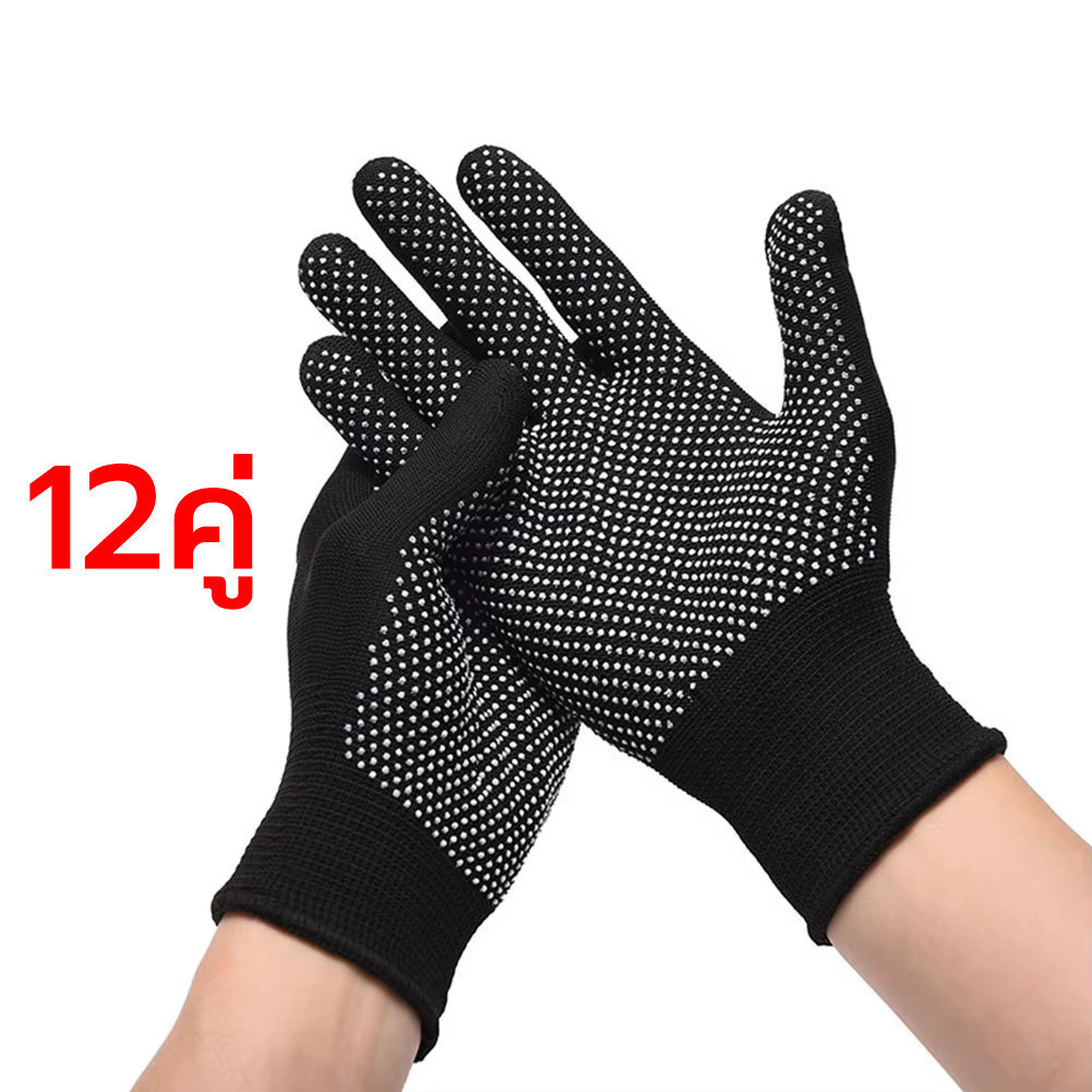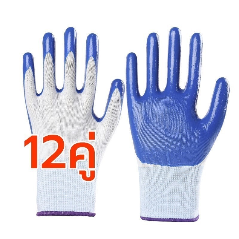 12 คู่ PU Rubberized ถุงมือ ถุงมือไนล่อน ไนไตรล์โฟมเคลือบถุงมือทํางาน/ความปลอดภัยถุงมือสีดําแรงงาน ยางสวนถุงมือ กันบาด
