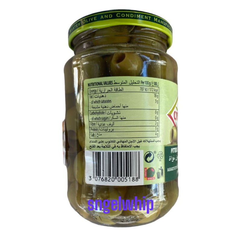 CRESPO PITTED GREEN OLIVES 354 G. มะกอกเขียวไม่มีเม็ดในน้ำเกลือ ตราเครสโป