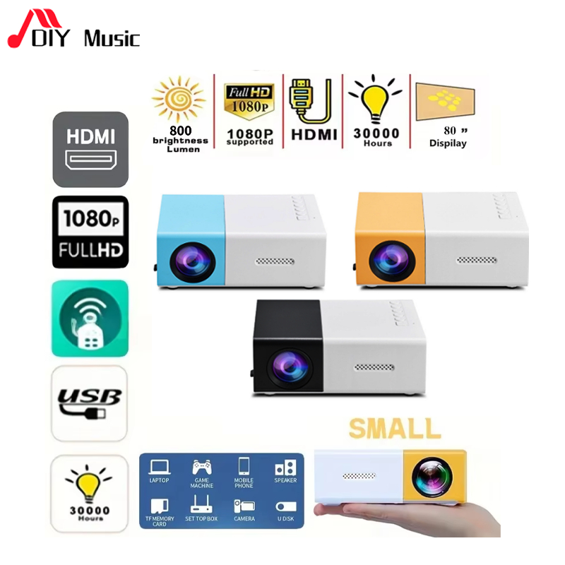 YG300 มินิโปรเจคเตอร์ 1080HD ลำโพงในตัวความละเอียดสูงรองรับการเชื่อมต่อกับโทรศัพ ท์มือถือและแล็ปท็อป