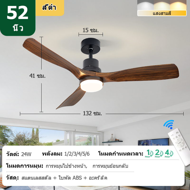 GEJIESE พัดลมเพดาน ไฟพัดลม 42/48นิ้ว ปรับแสง 3สี พัดลมมีรีโมท หมุนได้ 2ทิศทาง พัดลมเพดานมีไฟ พัดลมไฟเพดาน พัดลมโคมไฟ G11