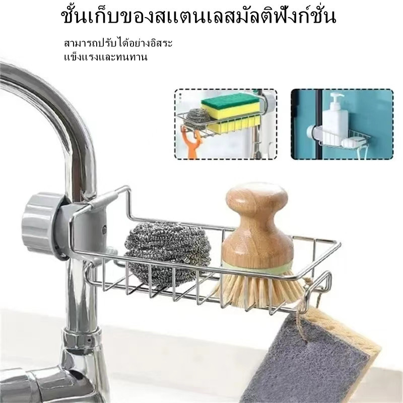 ที่วางฟองน้ำ ที่วางสบู่ ตะแกรงวางฟองน้ำ อย่างดี ติดตั้งง่าย ชั้นวางของสแตนเลส สำหรับอ่างล้างจาน ห้องน้ำ