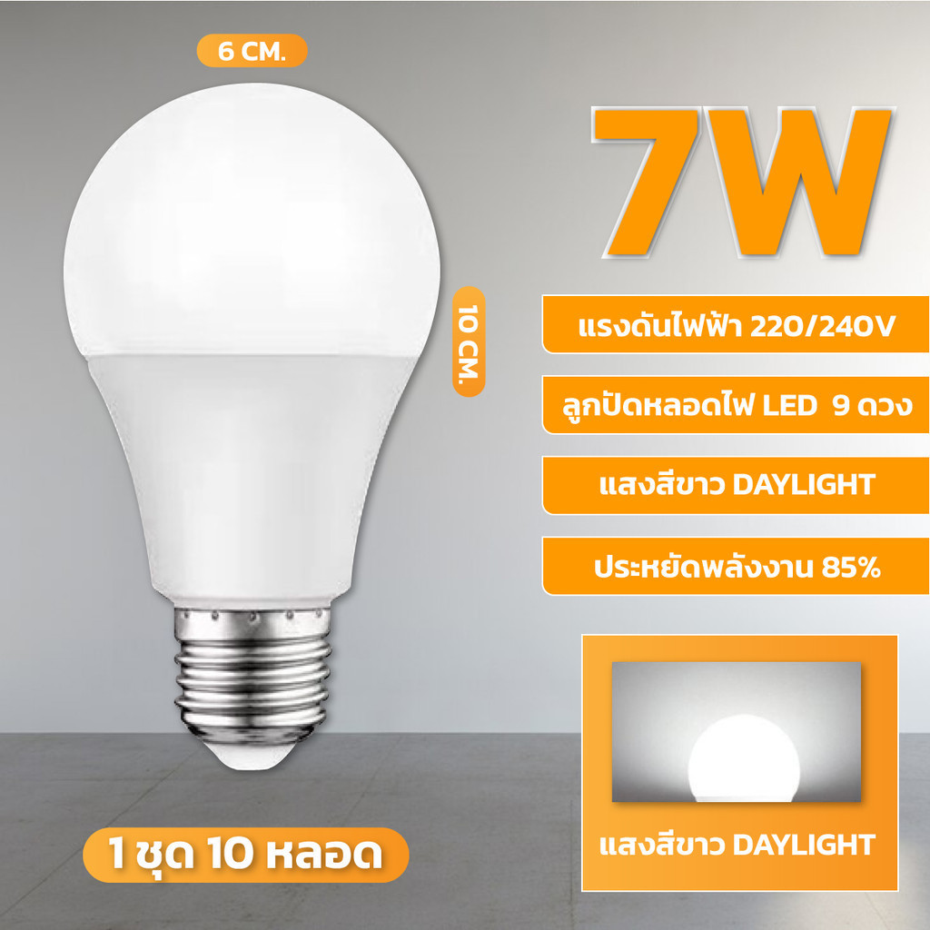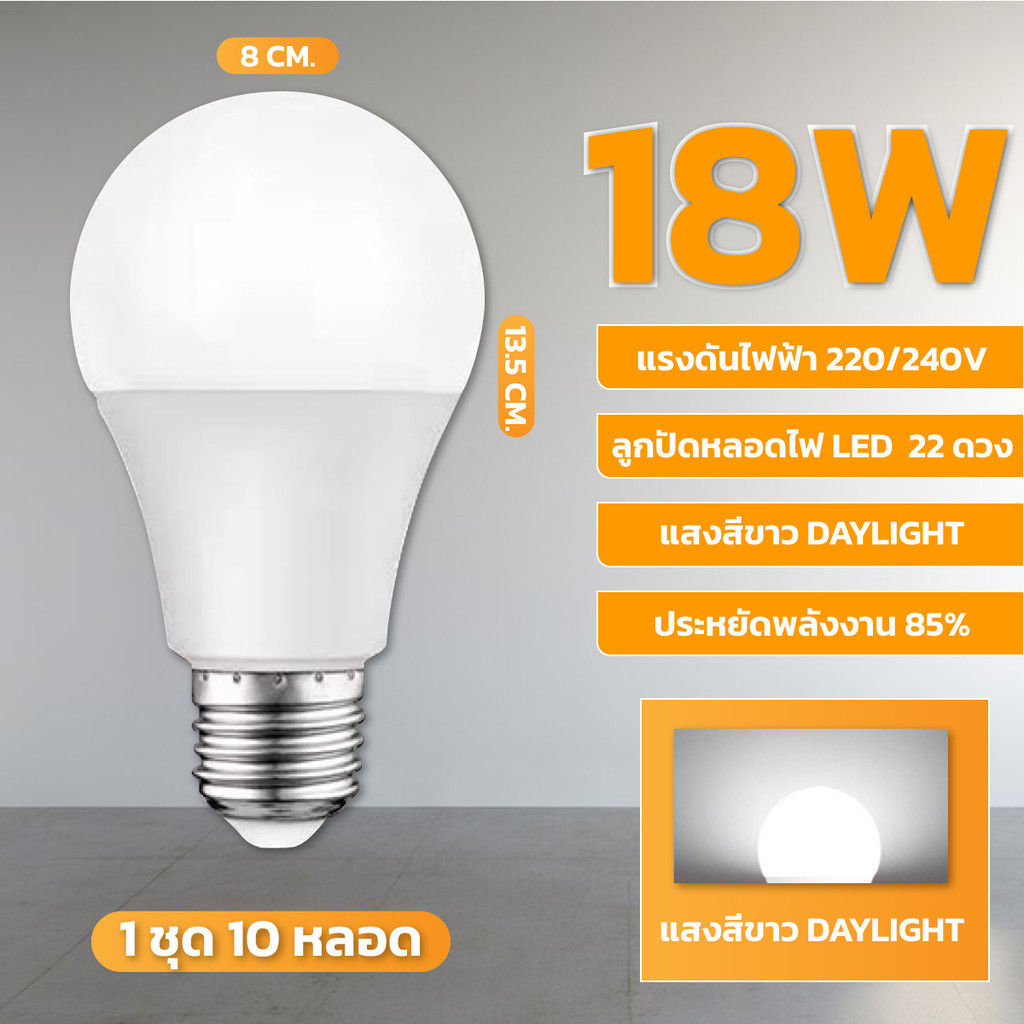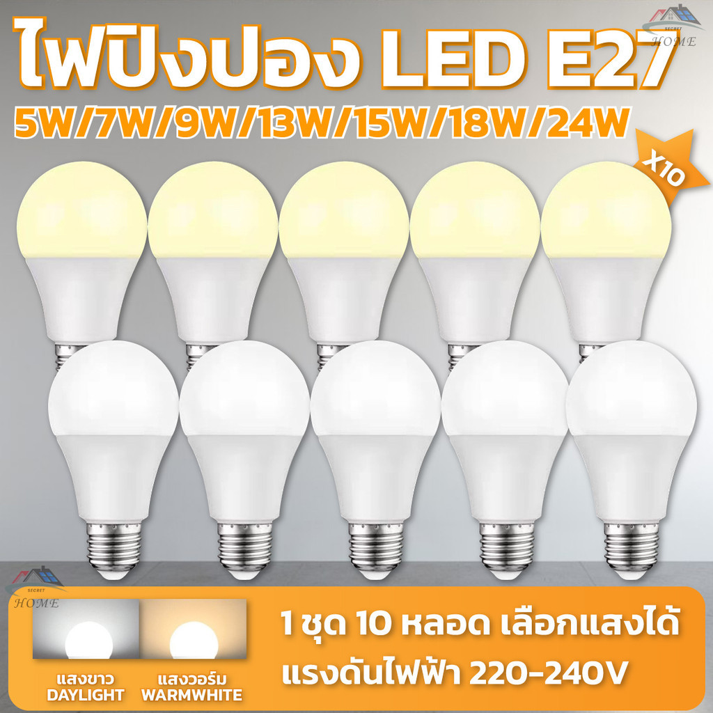 (10หลอด)หลอดไฟLED5W 7W 9W 13W 15W 18W 24W หลอดไฟประหยัดพลังงาน ใช้ขั้วE27 ไฟLED สว่างทั่วถึง กินไฟน้อย ใช้ไฟฟ้า220V