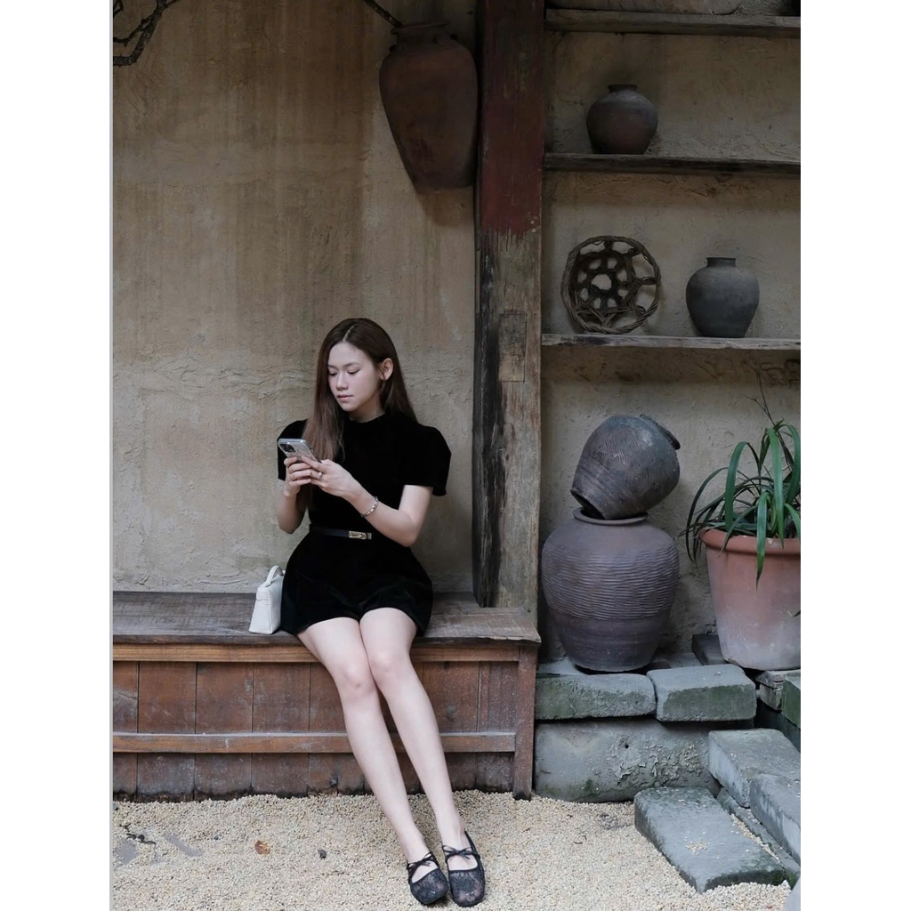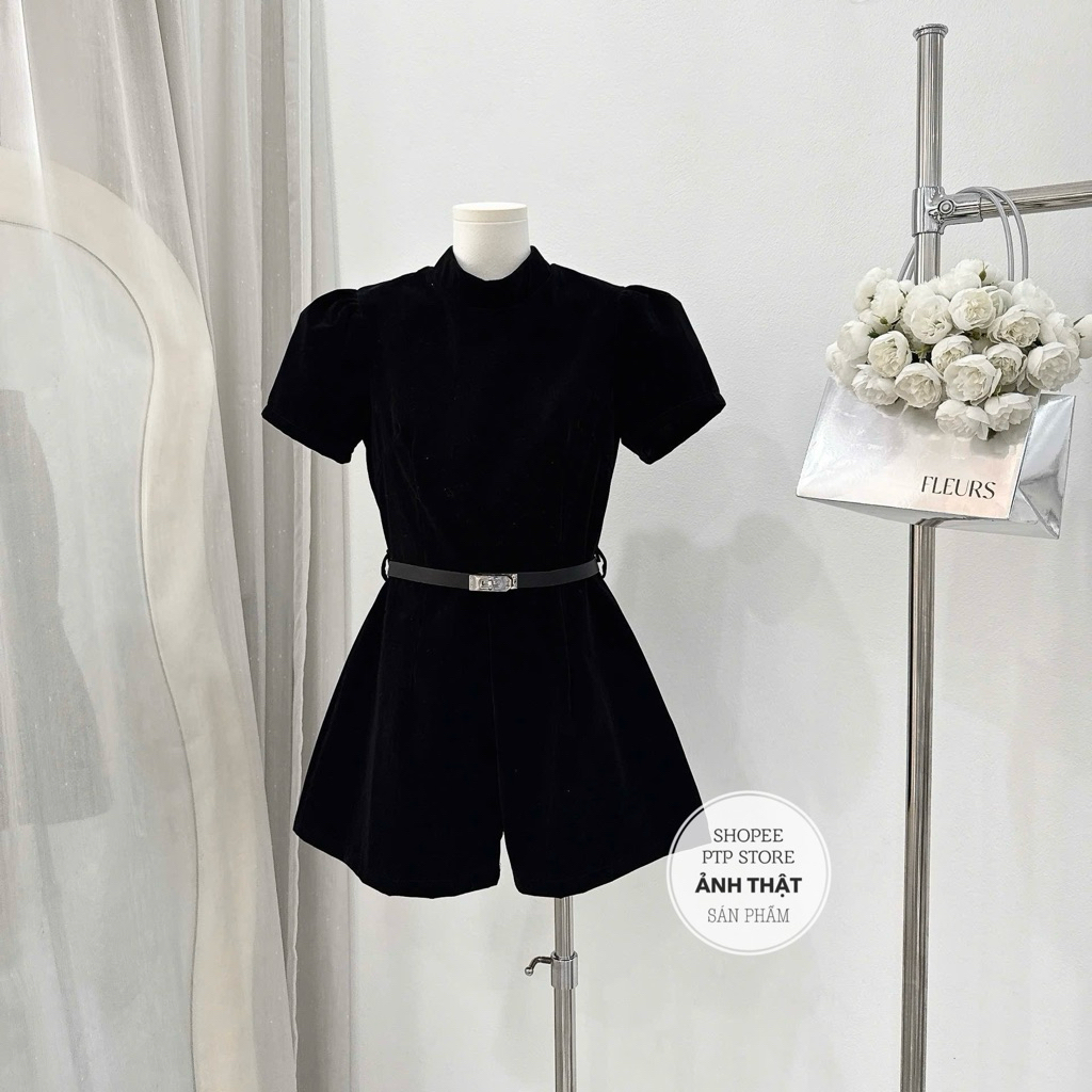 [โวลต์1.1056] จั๊มสูทกํามะหยี่พร้อมคอรถไฟและเข็มขัดหนังสุดน่ารัก
