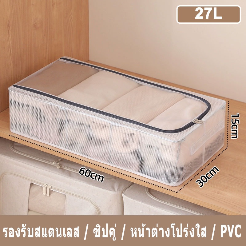 35L กล่องเก็บของใต้เตียง PVC กล่องเก็บของ สามารถวางซ้อนกันได้ กันน้ำ เอนกประสงค์ โปร่งใส ความจุสูง