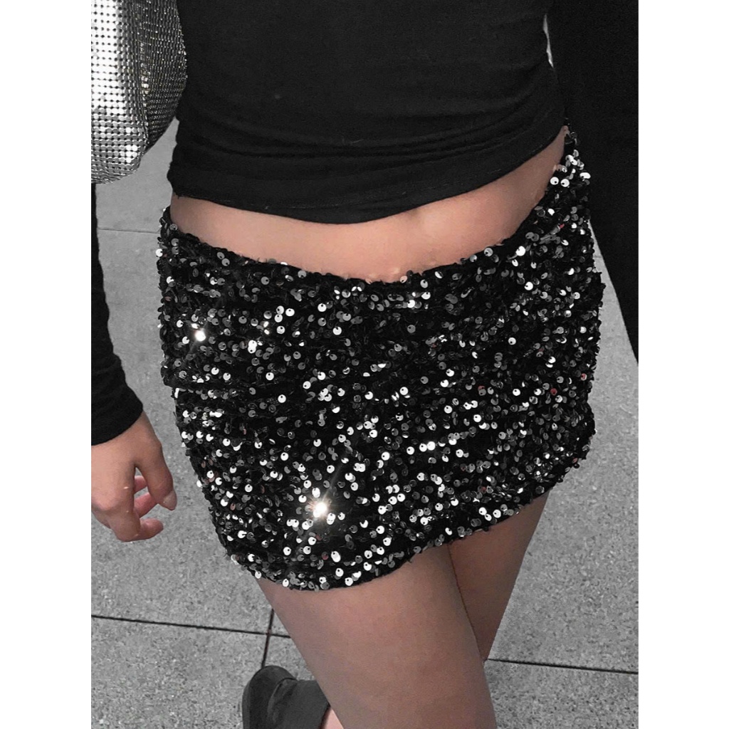 SA กระโปรงเลื่อมกํามะหยี่เอวต่ําสั้น - ร้าน Chinh Tran