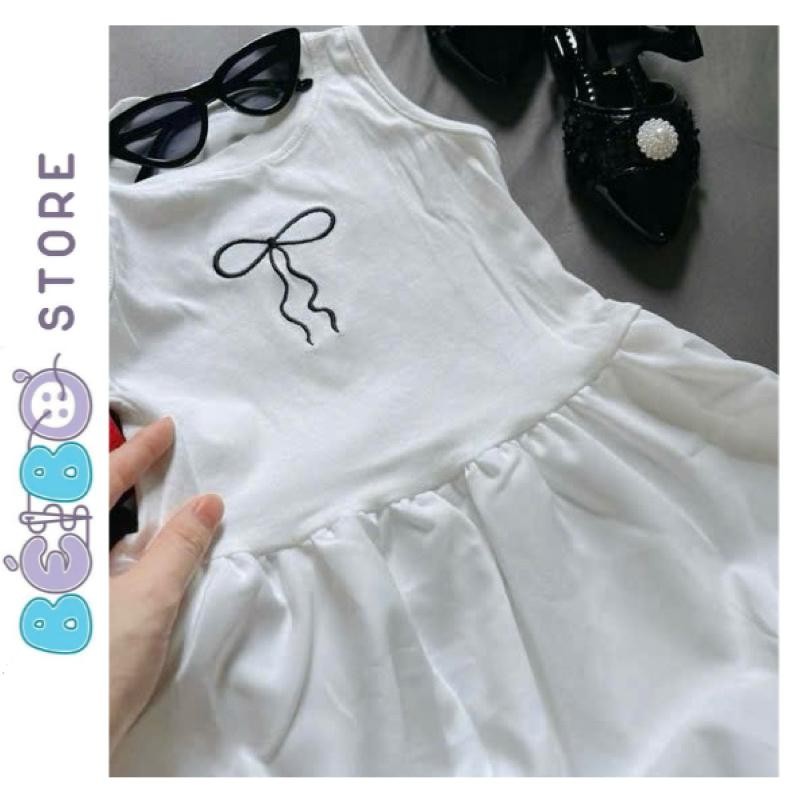 เดรสเสื้อกล้ามฟักทองโบว์ปักน่ารักสําหรับสาวน้อยใส่ไปเที่ยวหรือไปโรงเรียน