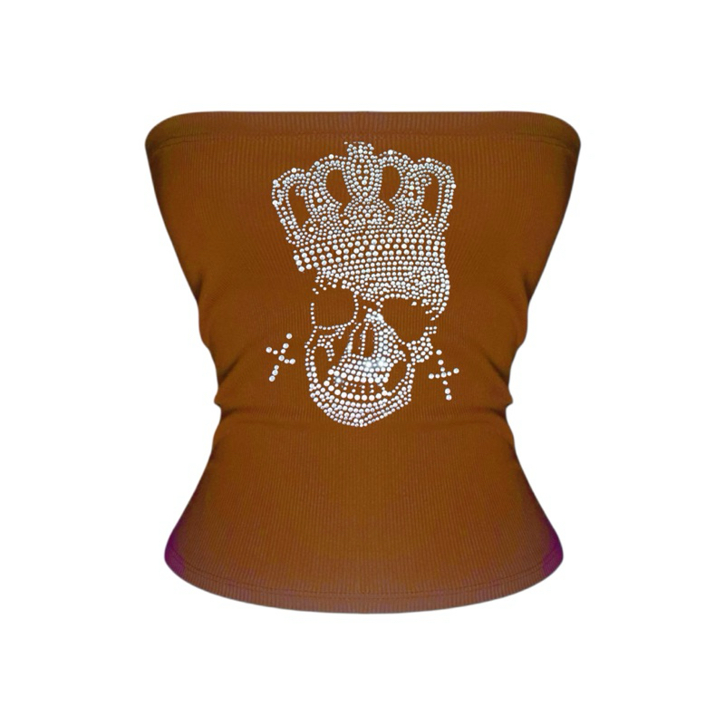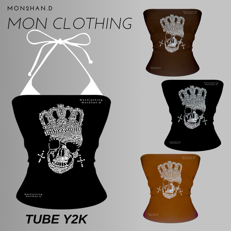 / TUBE CROWN SKULL / Y2K LONG TUBE SHIRT { พิมพ์โน้ตที่ปรับแต่งเอง } | เสื้อผ้าจันทร์ |