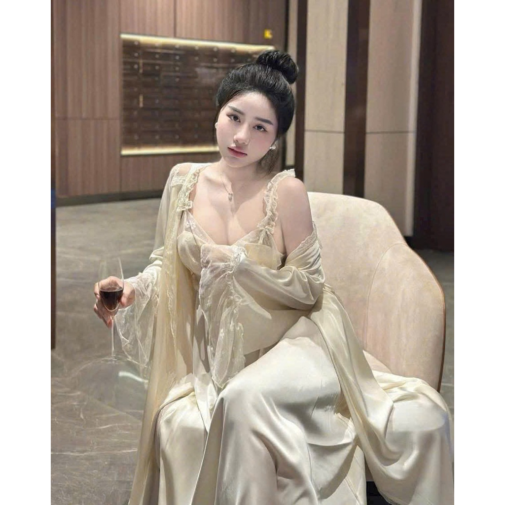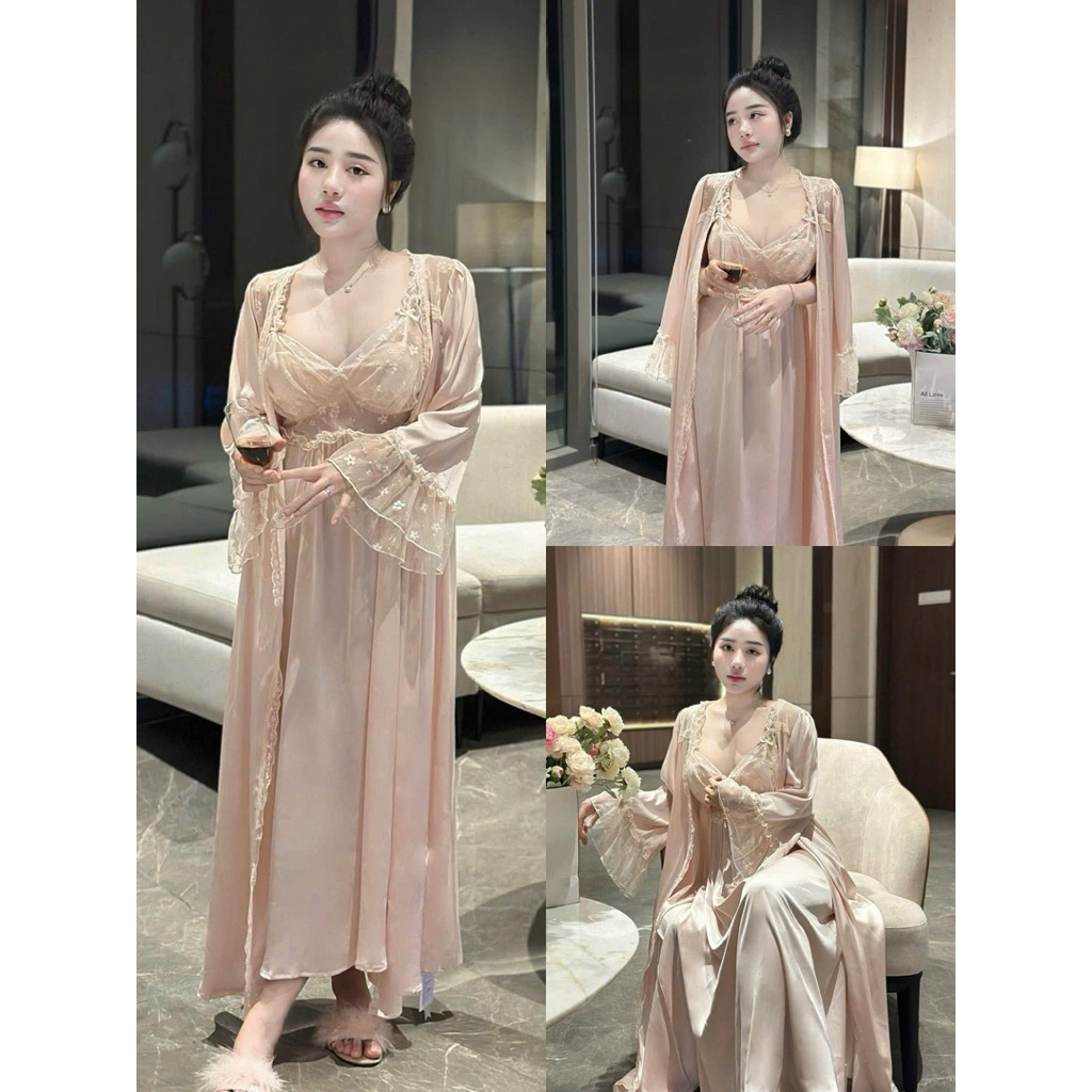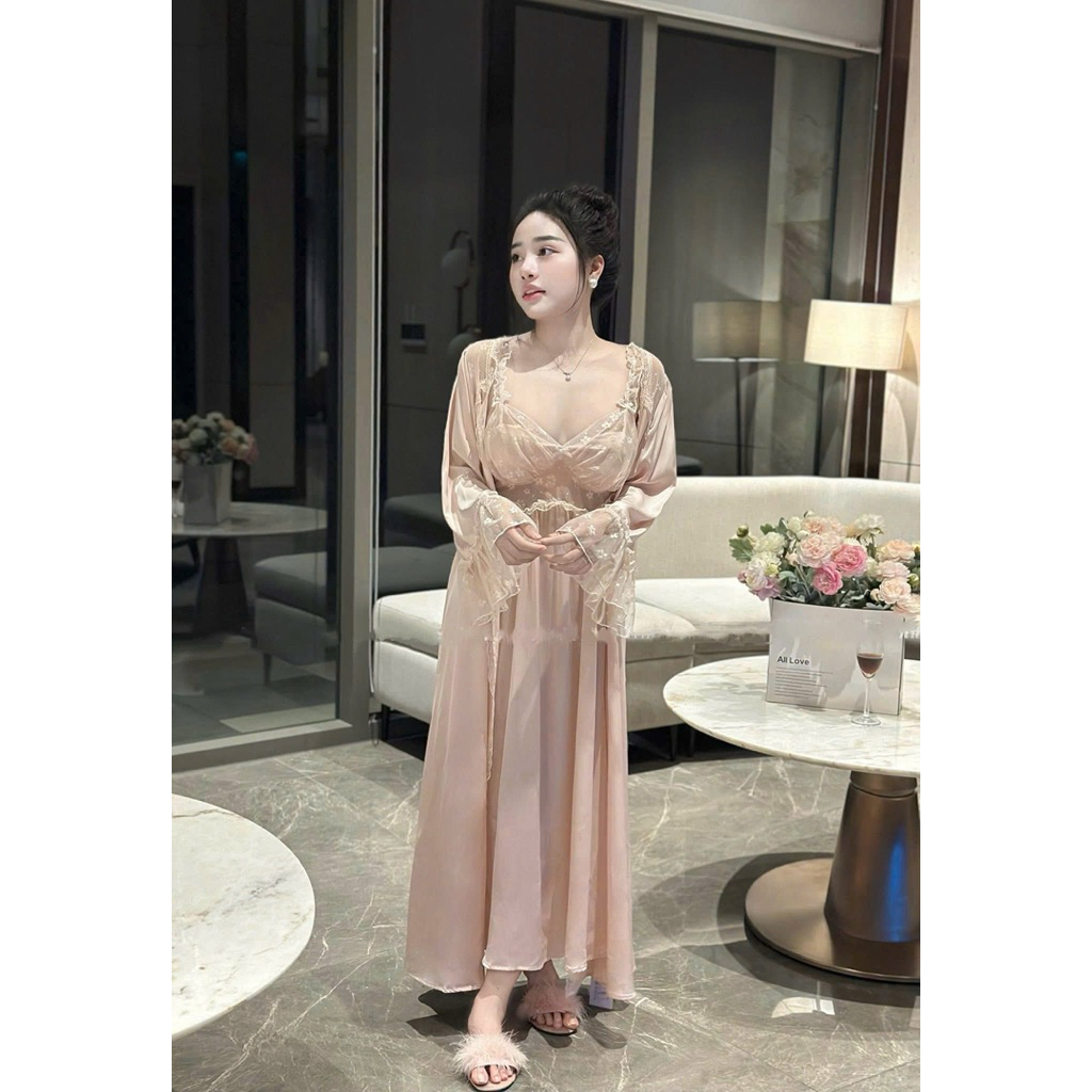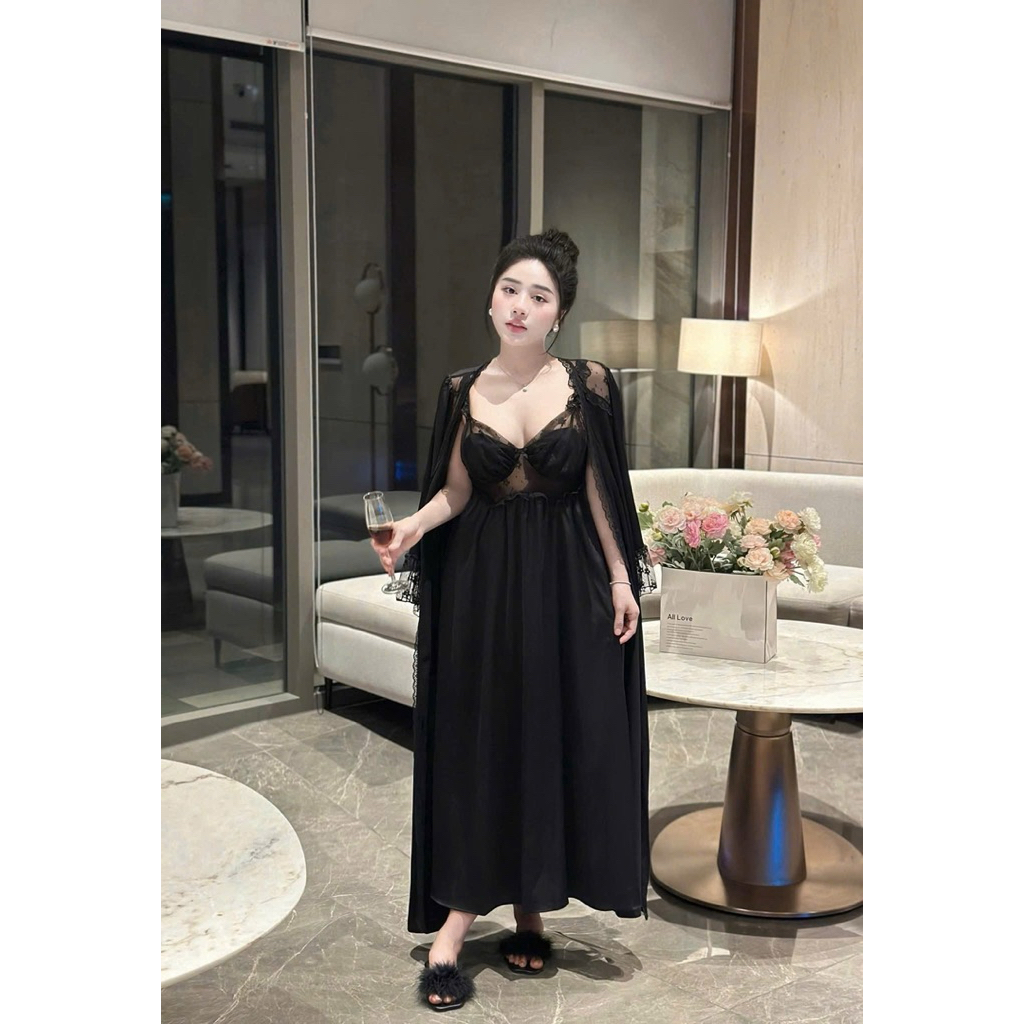 ชุด เดรส บวก เสื้อคลุมตัวยาวผ้าลาติไหมอย่างดี ฟรีไซส์