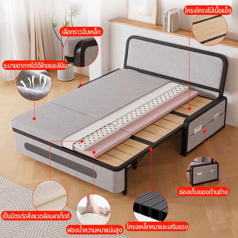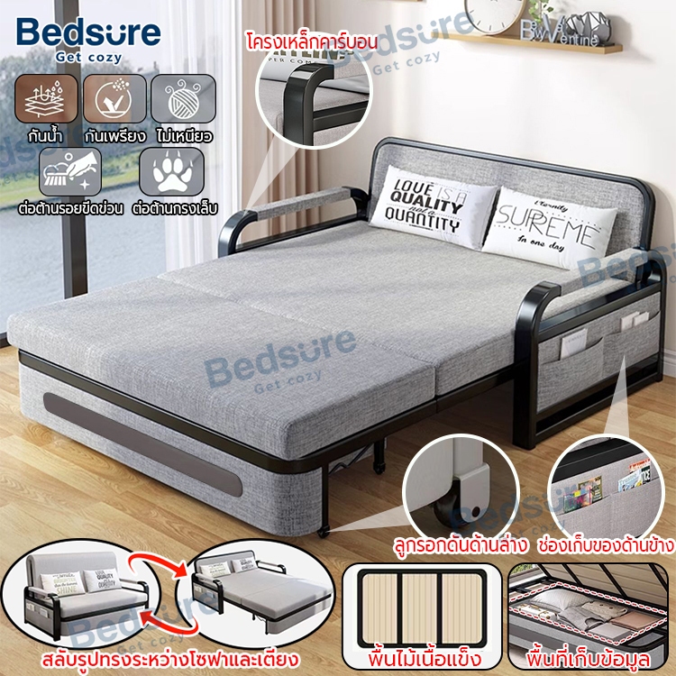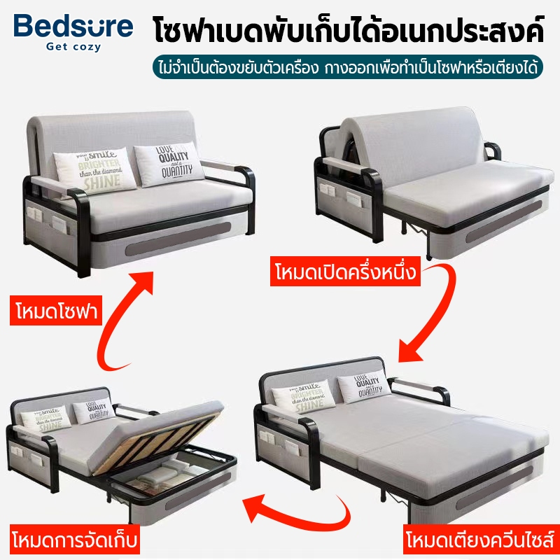 โซฟาปรับนอน โซฟาเบด4ฟุต 5ฟุต ด้วยการจัดเก็บ รับน้ำหนักได้400kg ปลอกถอดซักได้ พร้อมหมอน2ใบ โซฟา2ที่นั่ง 3ที่นั่ง sofa bed