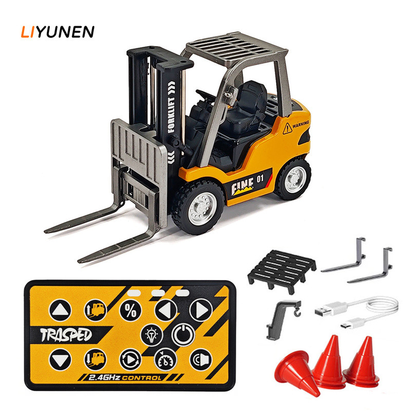 1:64 โลหะผสมRC ExcavatorรถยกMINIรถรีโมทคอนโทรลรถบรรทุกกระเป๋าขนาดเล็กของเล่นรถ1/64 วิศวกรรมยานพาหนะสําหรับของขวัญเด็กของเล่น