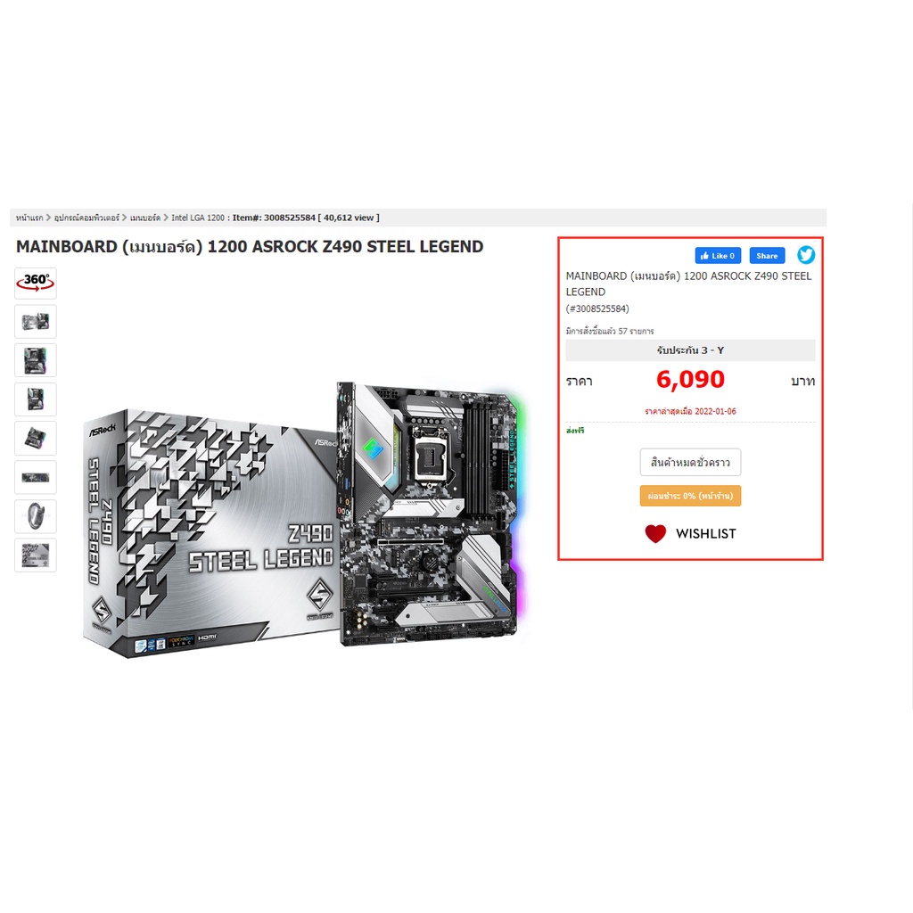 เมนบอร์ด ASROCK B490 STEEL LEGEND