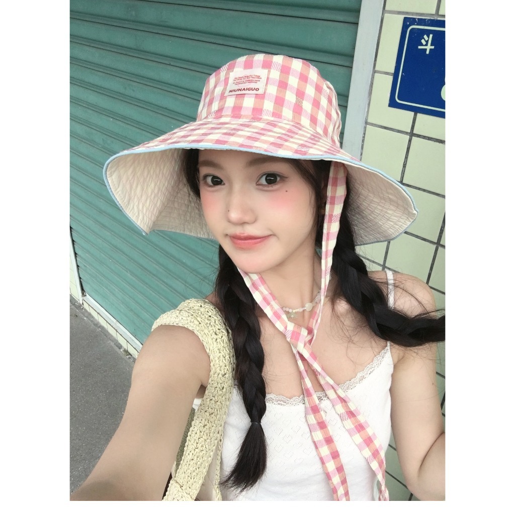 RIbbonIsland🌺หมวกกันแดด หมวกแฟชั่น สไตล์เกา หลี ins เดินป่า ระบายอากาศ กลางแจ้ง คุณภาพสูง สวย สร้อยคอลูกปัดสี ส่งเร็ว