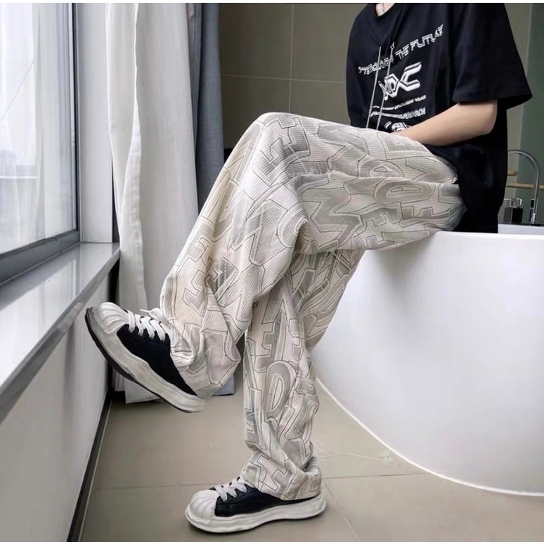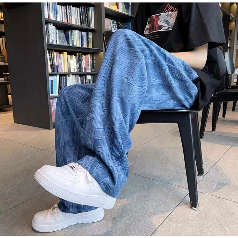 ACHSAWAKE แฟชั่นกางเกง คุณภาพสูงสำหรับผู้ชายเกาหลีถุงตรงตัด s ขาดกางเกงกางเกงกางเกงชาย Unisex